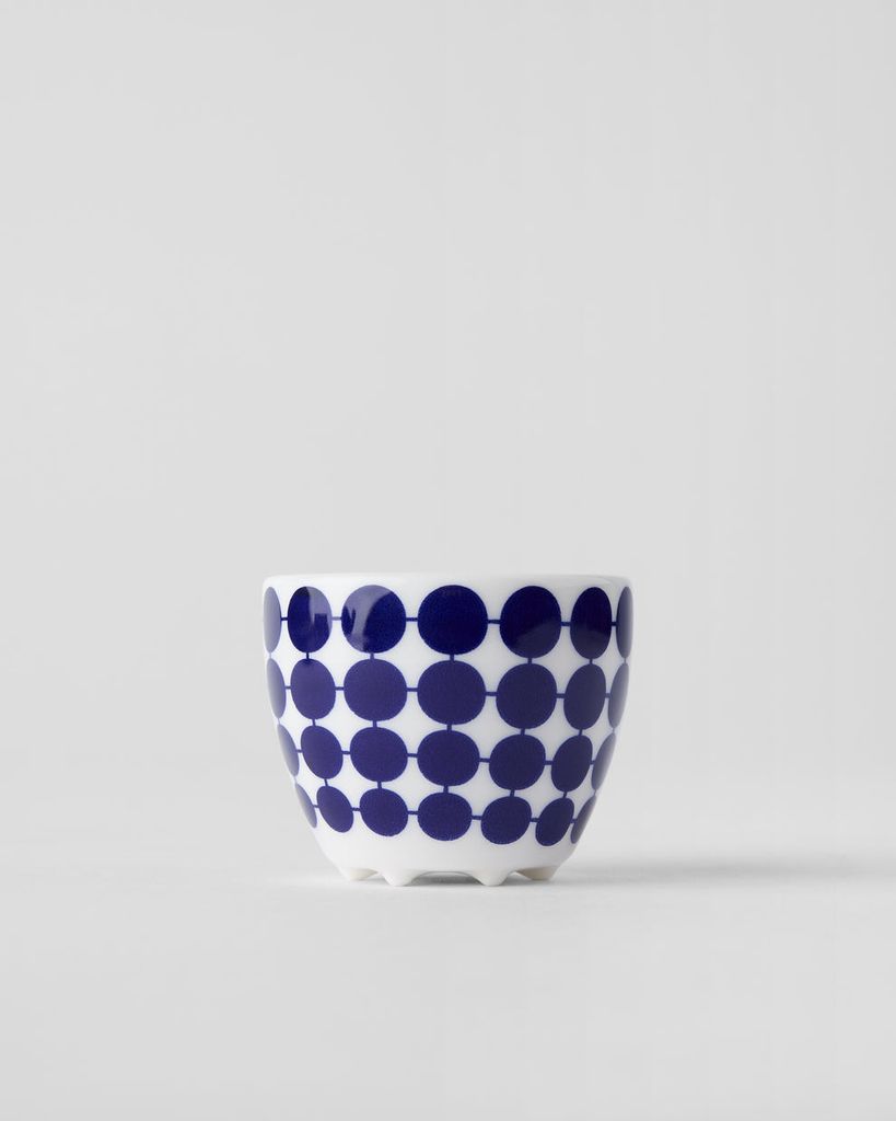 ADAM-serien är sedan länge en favorit bland samlare av svenskt porslin, och äggkoppen är en charmig och eftertraktad del. Med sin tydliga blå prickdesign är den lätt att kombinera med övriga delar i serien eller att låta stå framme som ett dekorativt objekt.