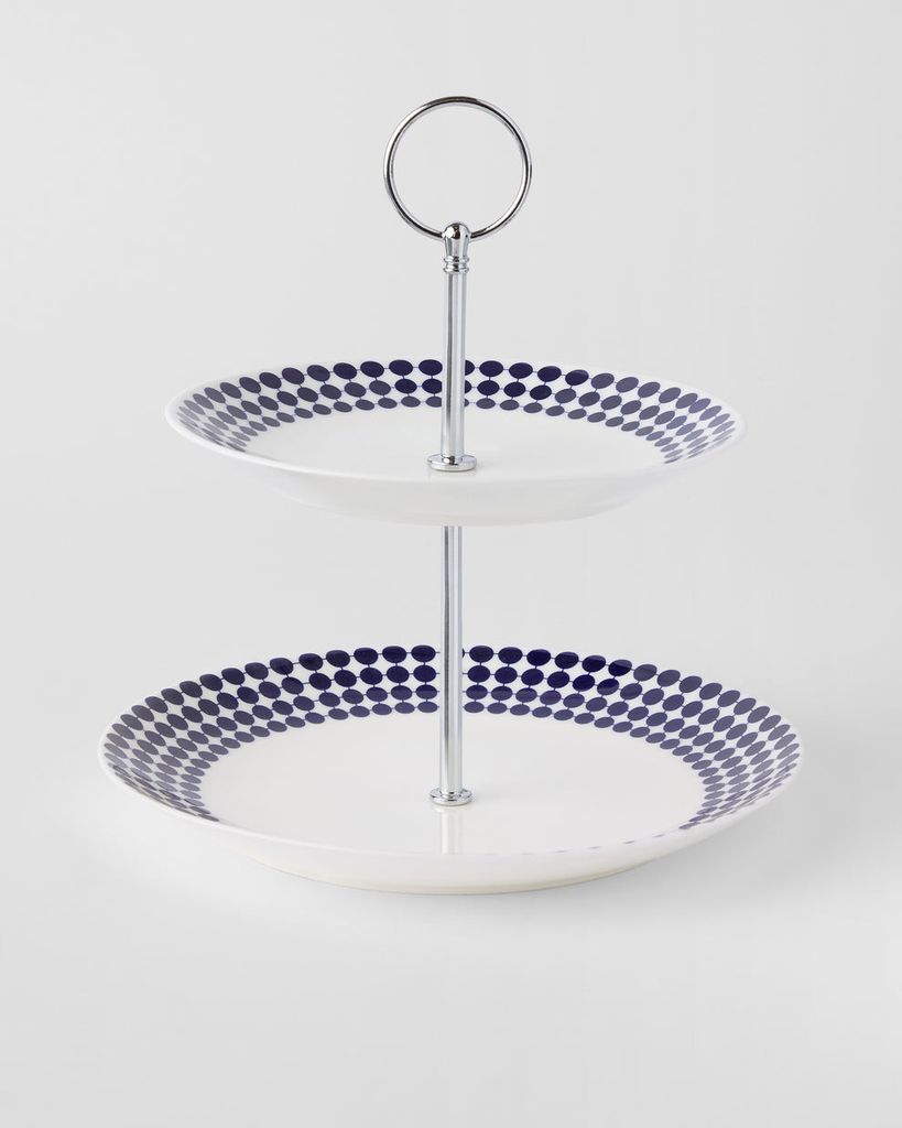 Det tvåvånings fatet erbjuder dubbla serveringsytor utan att ta upp extra plats på bordet – perfekt vid trånga bord eller för att skapa höjd och variation i dukningen. Den brämlösa utformningen ger ett modernt, rent uttryck, samtidigt som porslinets kvalitet säkerställer lång hållbarhet och tålighet vid användning.