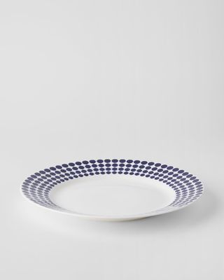 Gustavsberg ADAM tallrik 28 cm med bräm är en storslagen hyllning till klassisk svensk design. Med Stig Lindbergs ikoniska blå prickmönster på kritvit botten blir varje måltid en visuell njutning. Den generösa storleken och det eleganta brämet gör tallriken perfekt för huvudrätter, festmiddagar eller som serveringsfat.