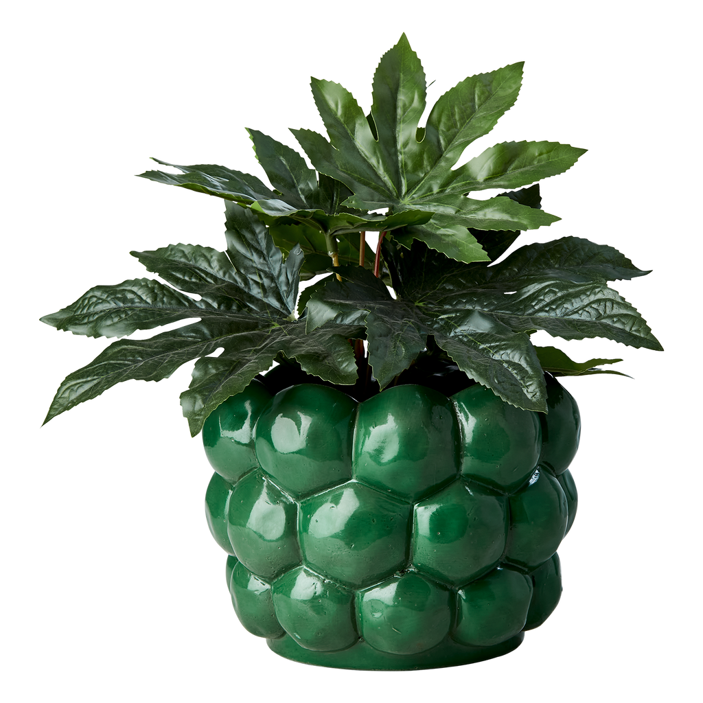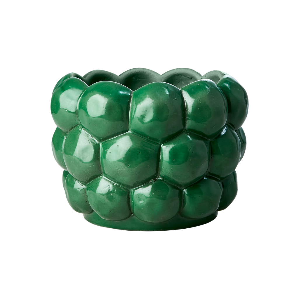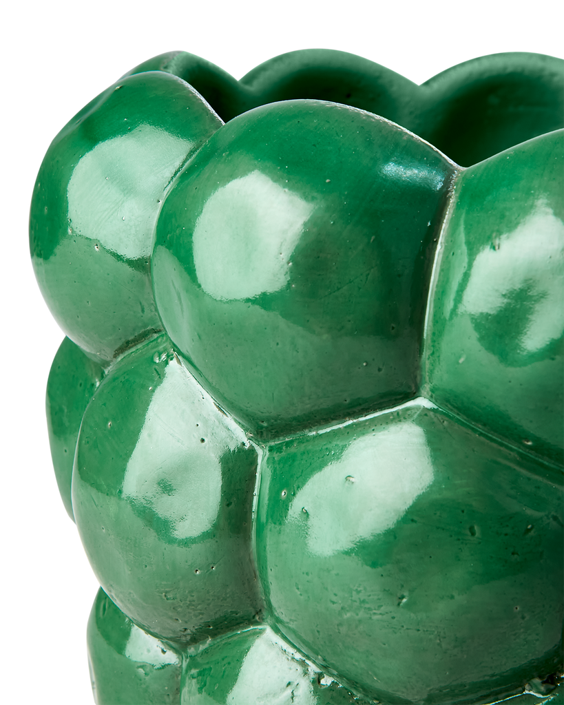 Stilfull grön kruka med unik bubblig design, perfekt för både inomhus och utomhusbruk.