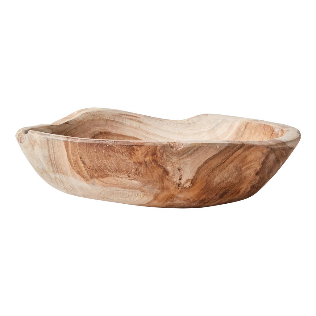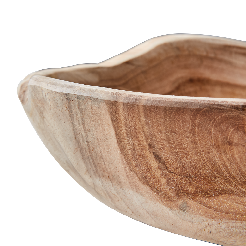 Skål. Sprickor och ojämnheter är en naturlig del av produkten. Teakrot innehåller naturlig olja, kan ge märken på ömtåliga ytor.