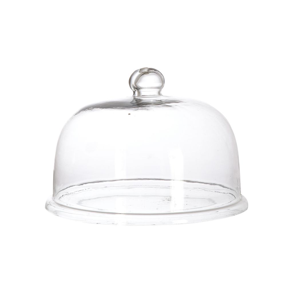 Elegant och tidlös glaskupa i klart munblåst glas med unika detaljer, perfekt för stilfull servering.