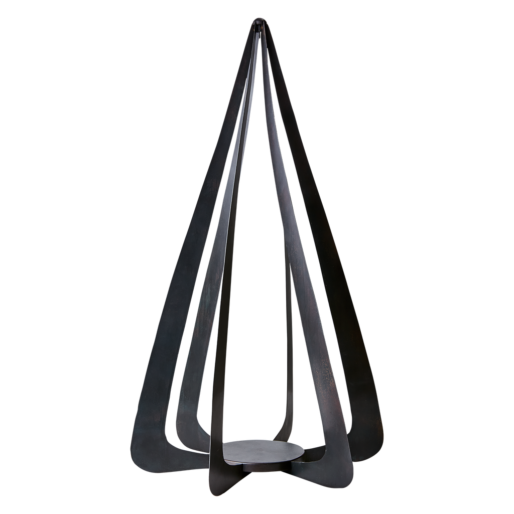 Elegant uteljushållare i svart järn, funktionell som både ljushållare och växtstöd. Patineras vackert utomhus.