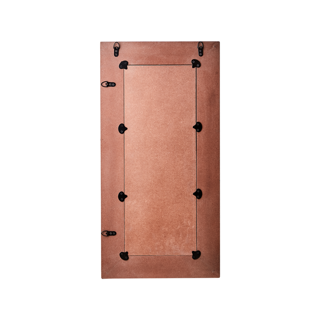 Baksidan av spegeln är försedd med robusta fästen, vilket gör den enkel att montera på väggen. Den är designad för att vara både praktisk och dekorativ, vilket gör den till ett mångsidigt tillskott i ditt hem.