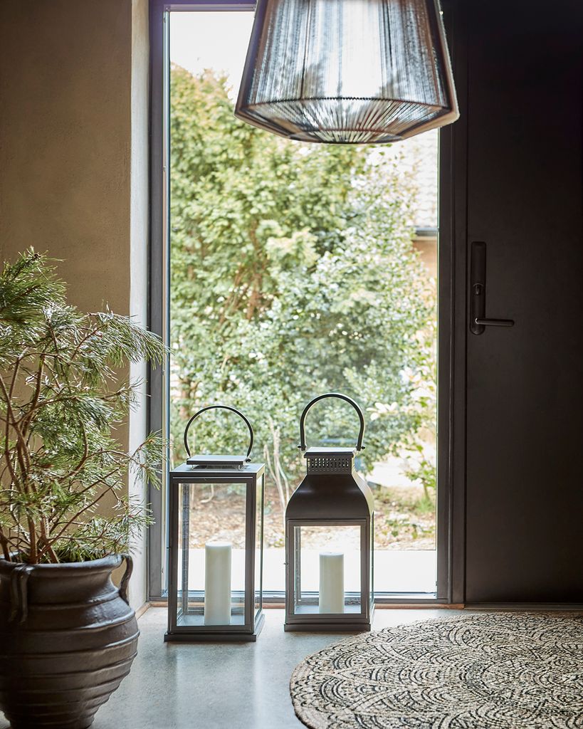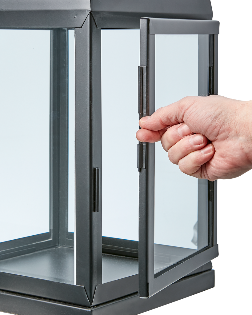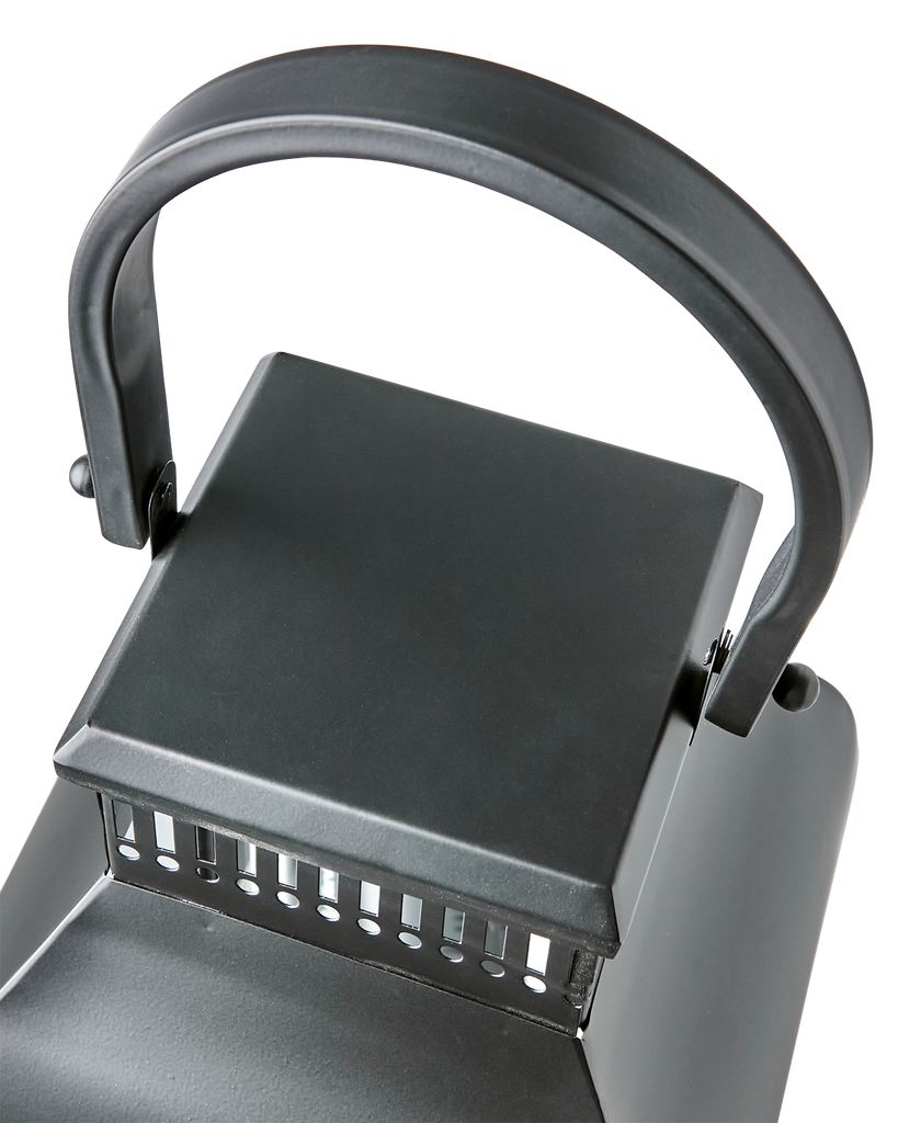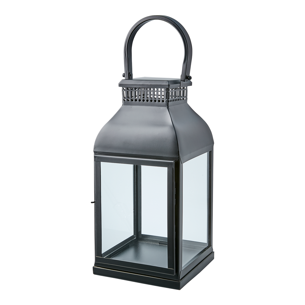 - Material: Lykta tillverkad i robust järn och klart glas.