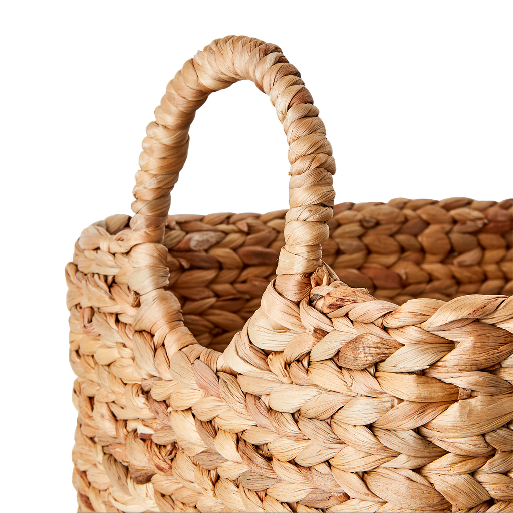 Designen har två rejäla, integrerade handtag som gör korgarna lätta att bära, vilket gör dem perfekta för allt från förvaring av filtar till arrangemang av blommor. Den naturliga nyansen kompletterar de flesta inredningsstilar och ger en subtil, jordnära känsla.