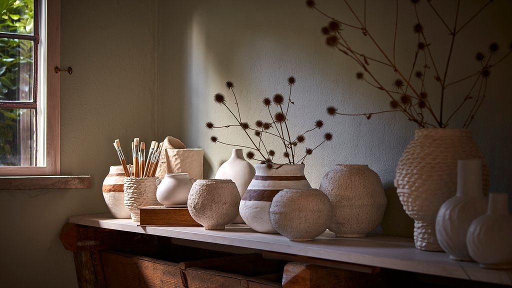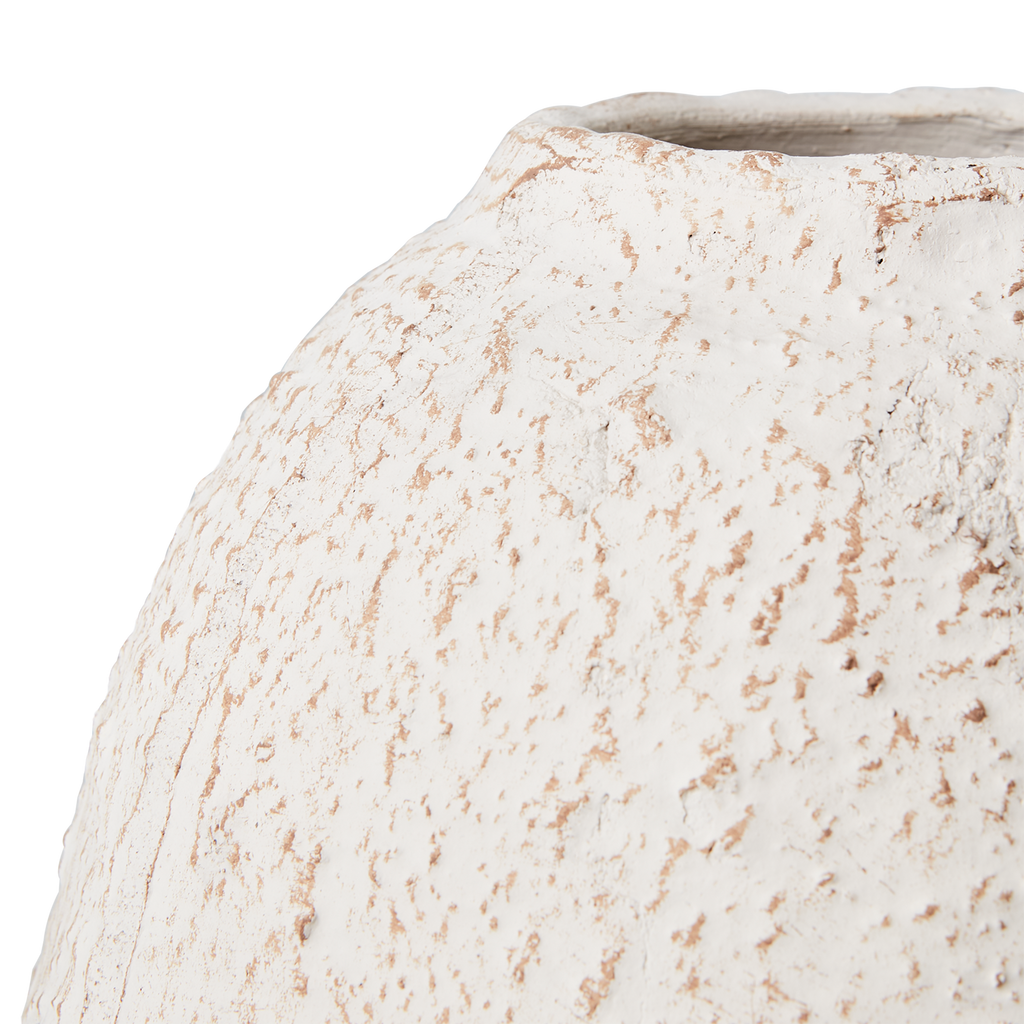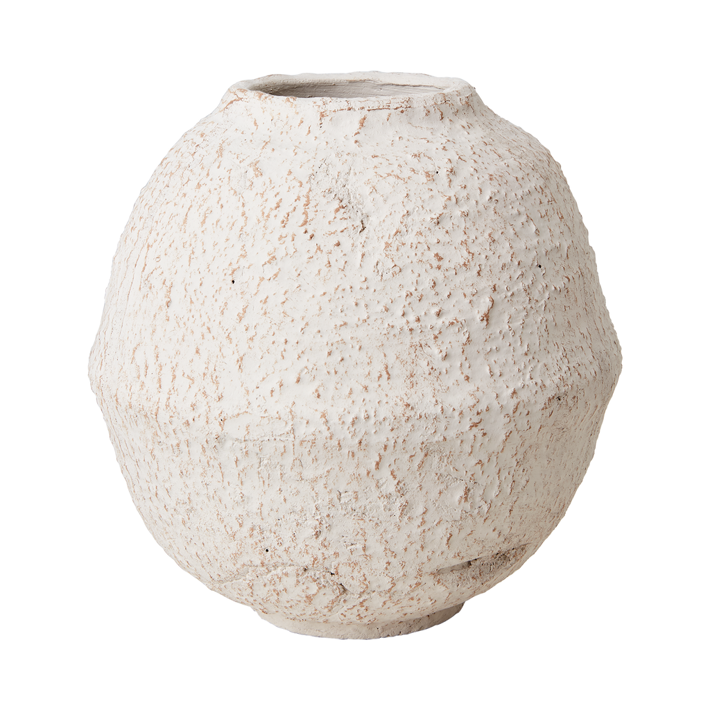 Elegant terrakottakruka i elfenben med taktil yta och tidlös design, perfekt för både inomhus och utomhus.