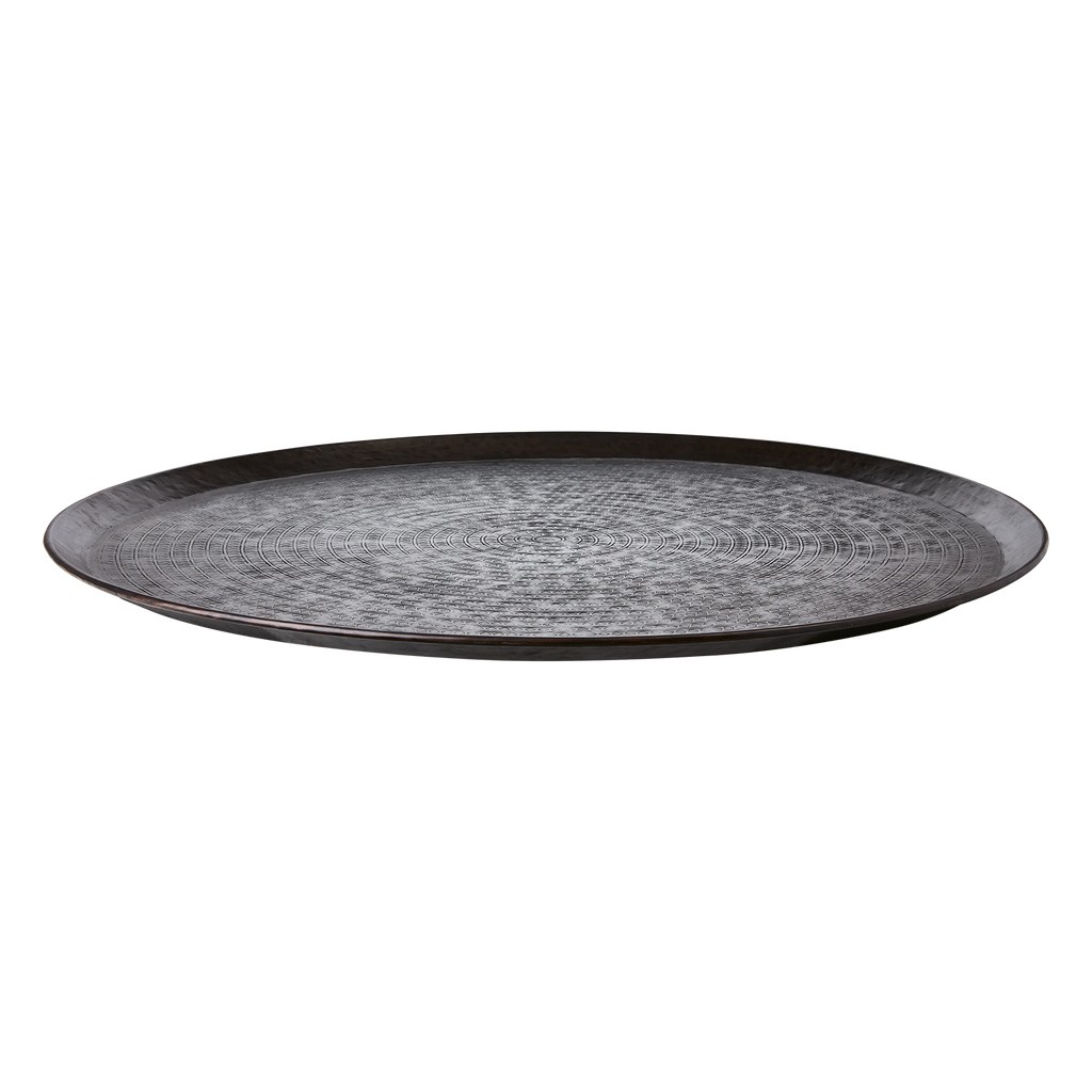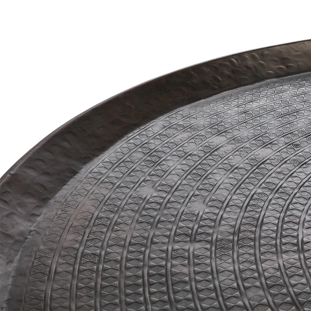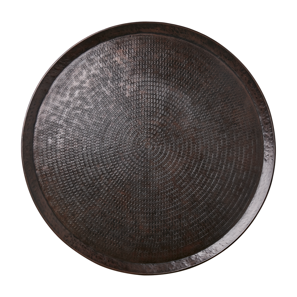 Elegant fat i brunt och svart aluminium, perfekt för stilfull servering. Diameter 90 cm.