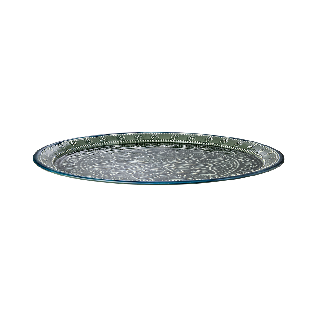 Upptäck det vackra ELDORADO fatet från Affari of Sweden i en djup grön nyans. Detta fat är tillverkat av högkvalitativt järn och har en stilfull emaljbeläggning som ger det en polerad och lyxig finish. Det intrikata mönstret, skapat med precision genom en maskin, gör varje servering till en fest.