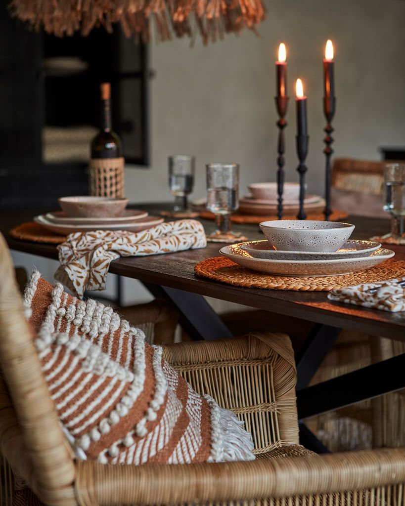 Affari of Sweden ELINA Tallriksunderlägg Mönstrad, Natur/svart 12-pack