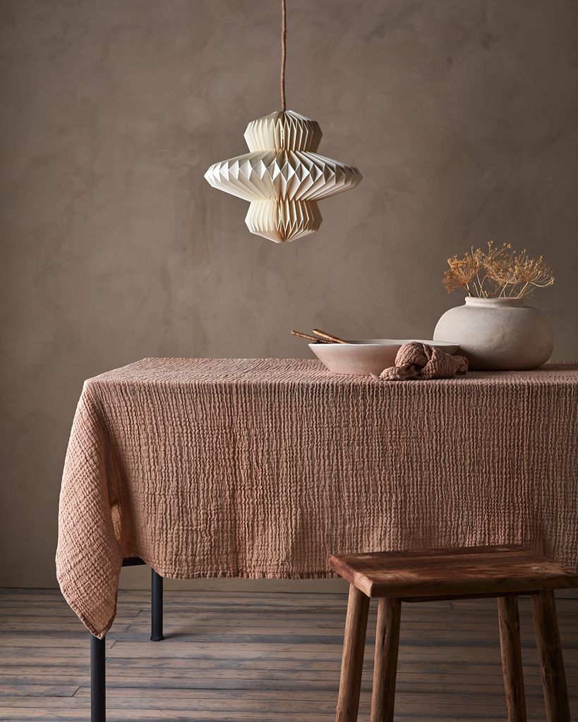 Elegant bordsduk i rost och elfenben från Affari of Sweden, perfekt för att skapa en varm och sofistikerad stämning.