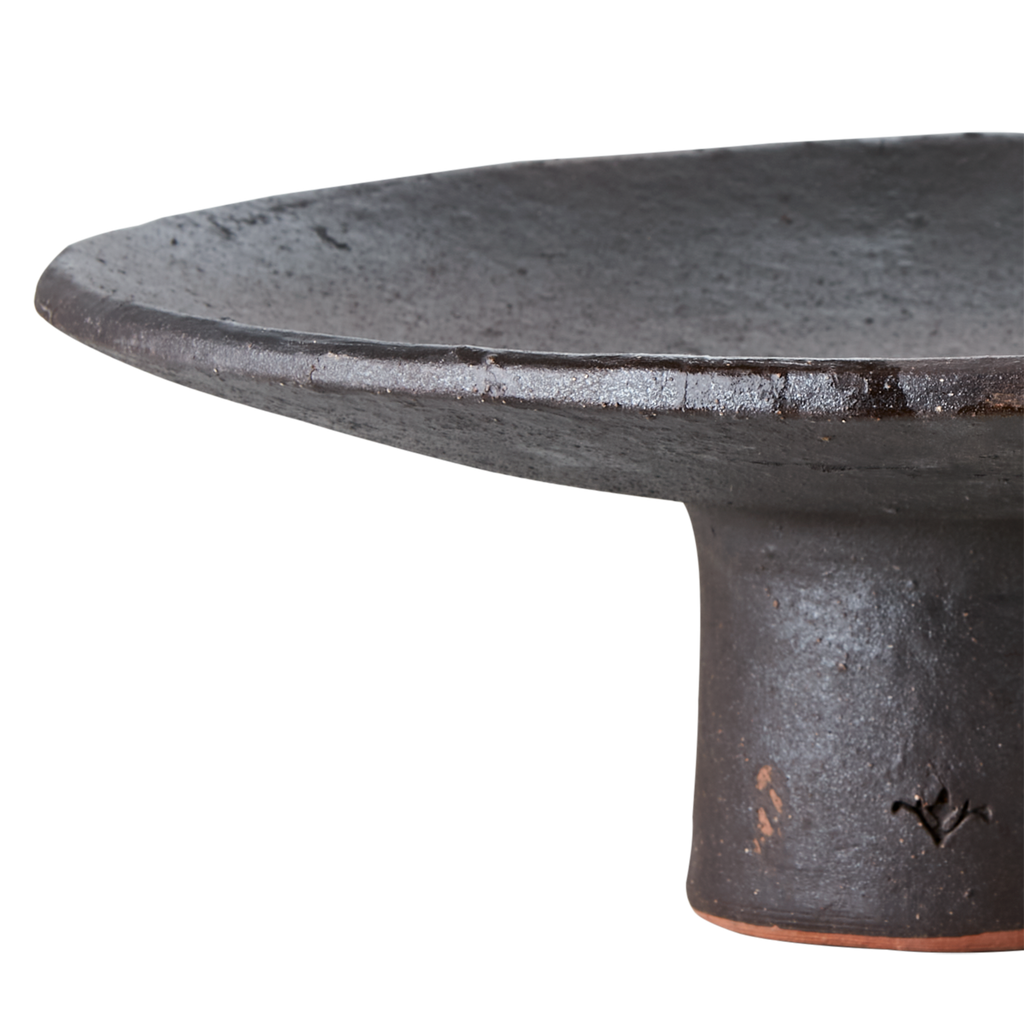 Elegant handgjort fat i stengods med en unik svart yta. Perfekt för stilfull inredning.