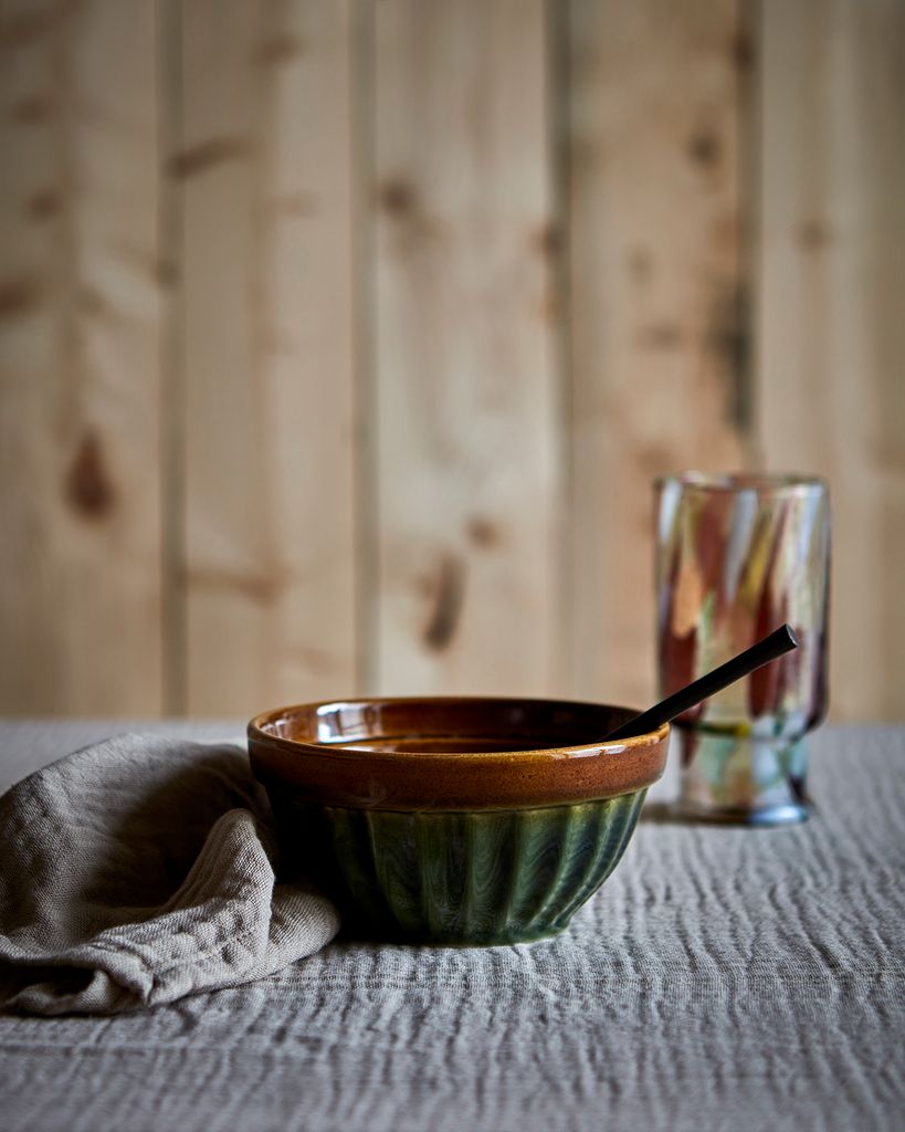 Glas. Tål maskindisk. Munblåst. Bubblor och ojämnheter kan förekomma. Färgstyrkan kan variera.