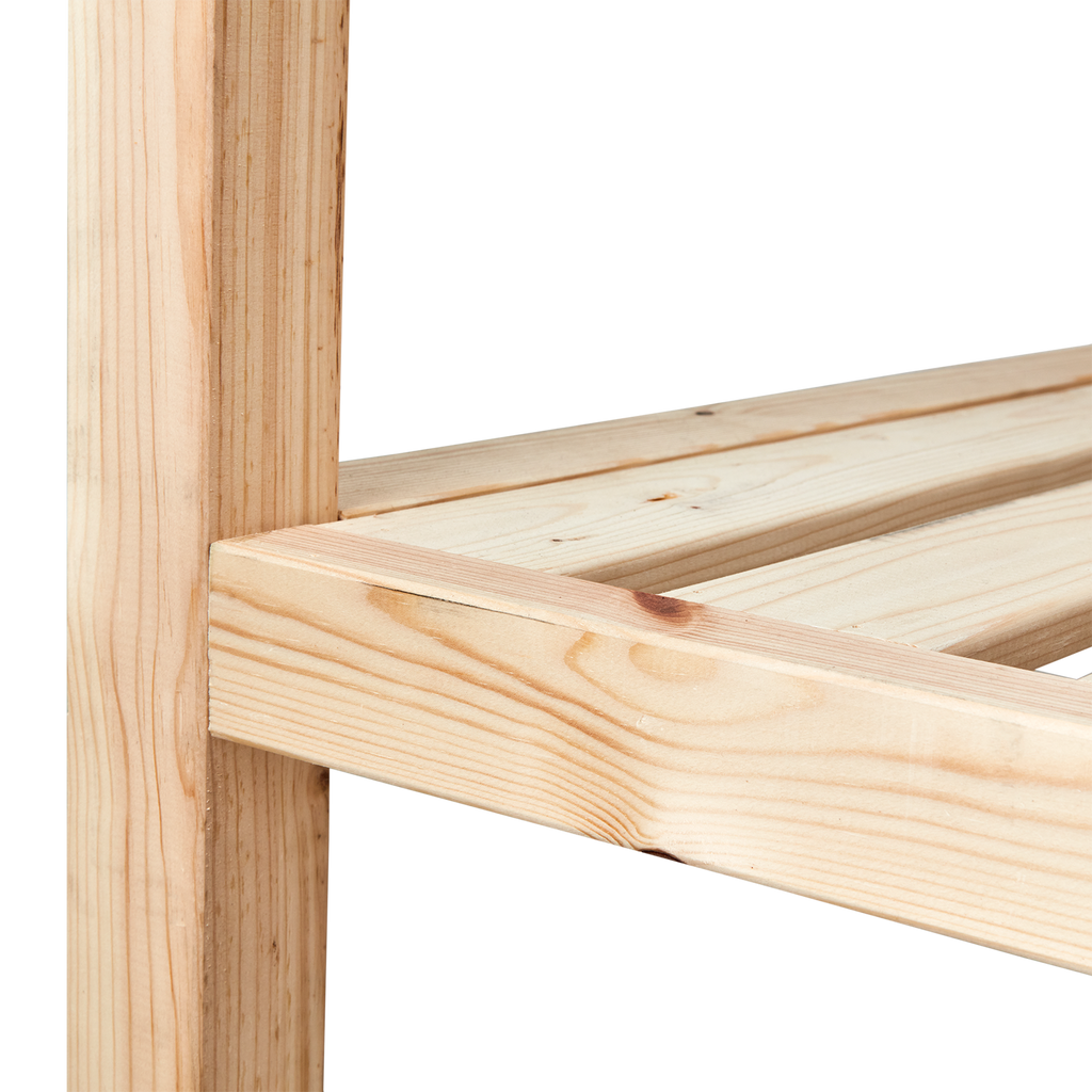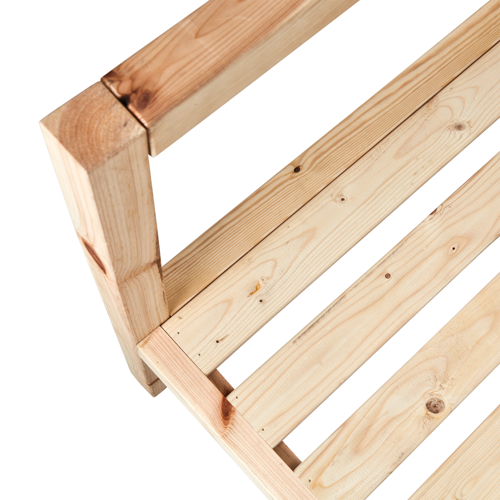 Med en bredd på 120 cm, ett djup på 78 cm och en höjd på 70 cm, är denna soffa designad för att passa i alla utrymmen. Den robusta konstruktionen säkerställer hållbarhet, medan den naturliga träfärgen ger en varm och inbjudande atmosfär.