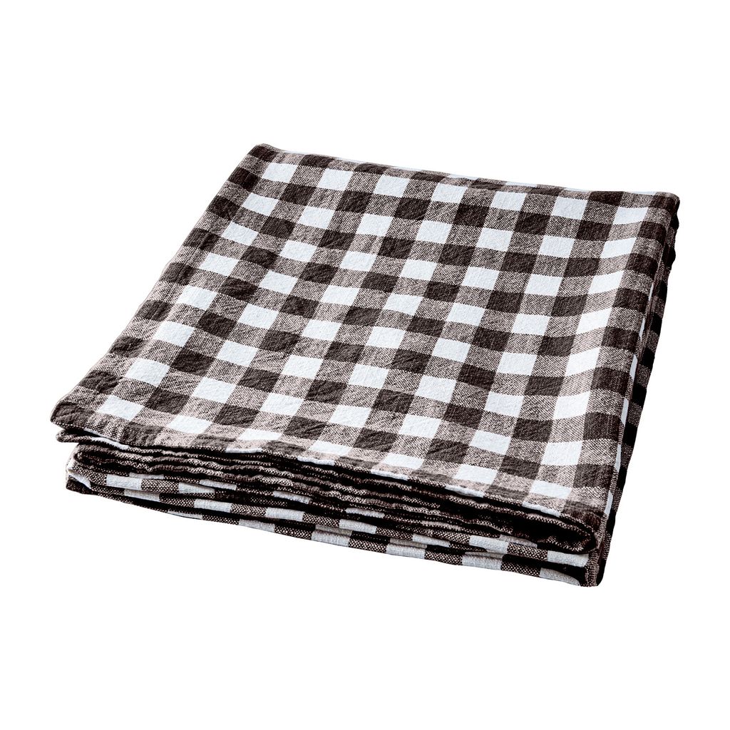 Elegant rutmönstrad bordsduk i brun och elfenben för stilfulla dukningar. Tillverkad i mjuk bomull.