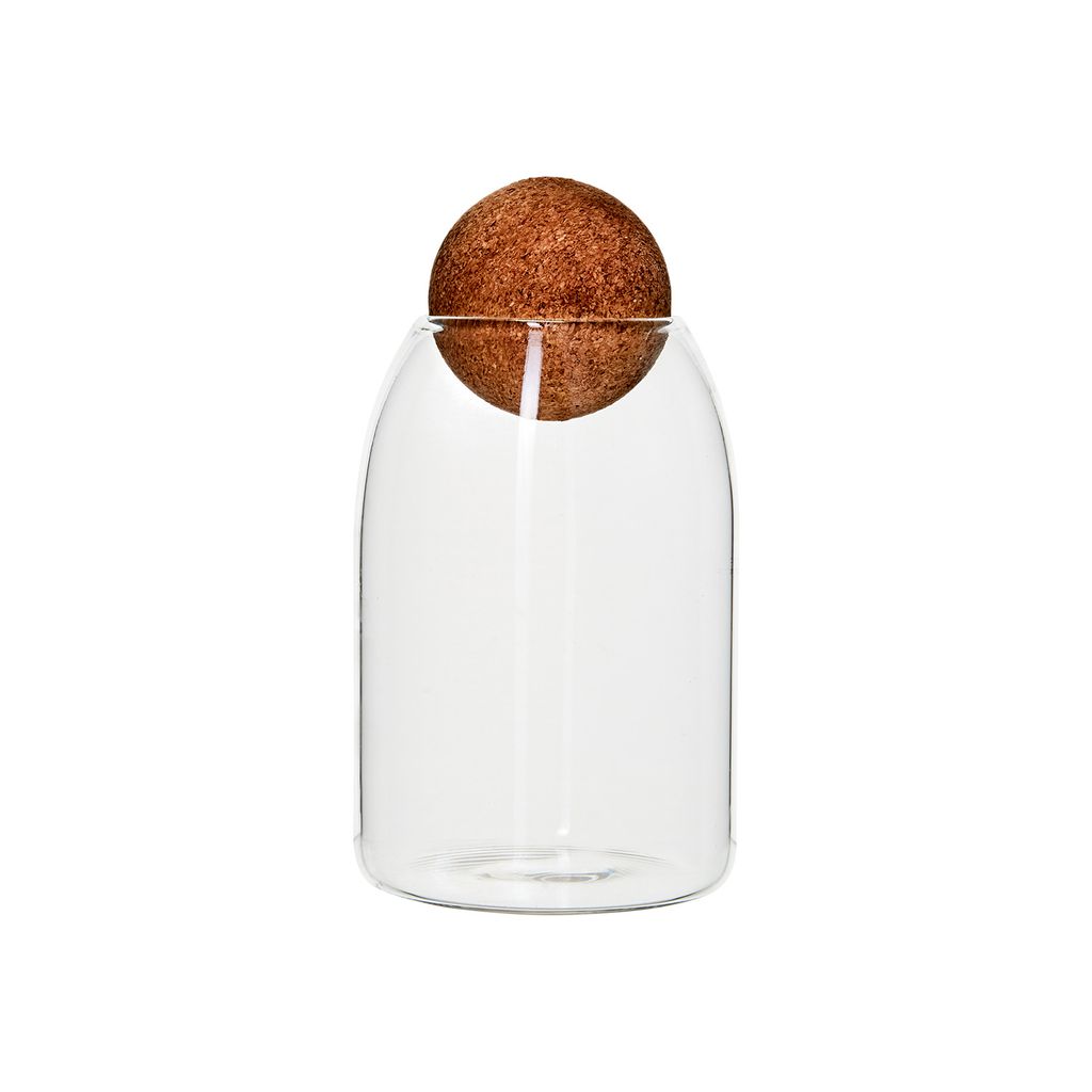 Flaska med lock. Hål genom korken. Kan även användas som vas. Tillverkad av borosilikatglas som kan användas med varmt vatten.