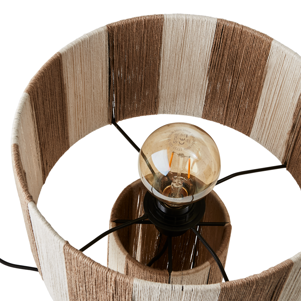 Lampans design med randiga texturer skapar ett intressant visuellt djup och kompletteras av en robust bas. Den medföljande E27 EU-stickkontakten samt en 2,15 meter lång textilsladd gör installationen enkel och säker. Med en maxeffekt på 25W erbjuder denna lampa precis rätt mängd ljus för en mysig miljö.