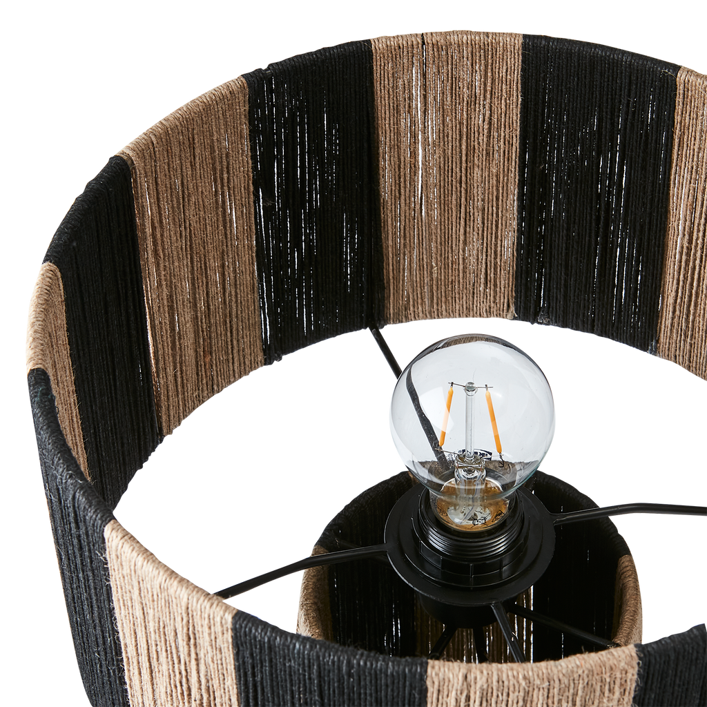 Ge ditt hem en modern touch med Affari of Sweden JULLAN Bordslampa. Denna eleganta lampa kombinerar svart och naturligt färgade trådar som skapar ett unikt och iögonfallande mönster. Lampans cylindriska design passar perfekt i alla rum och ger en varm och inbjudande atmosfär.