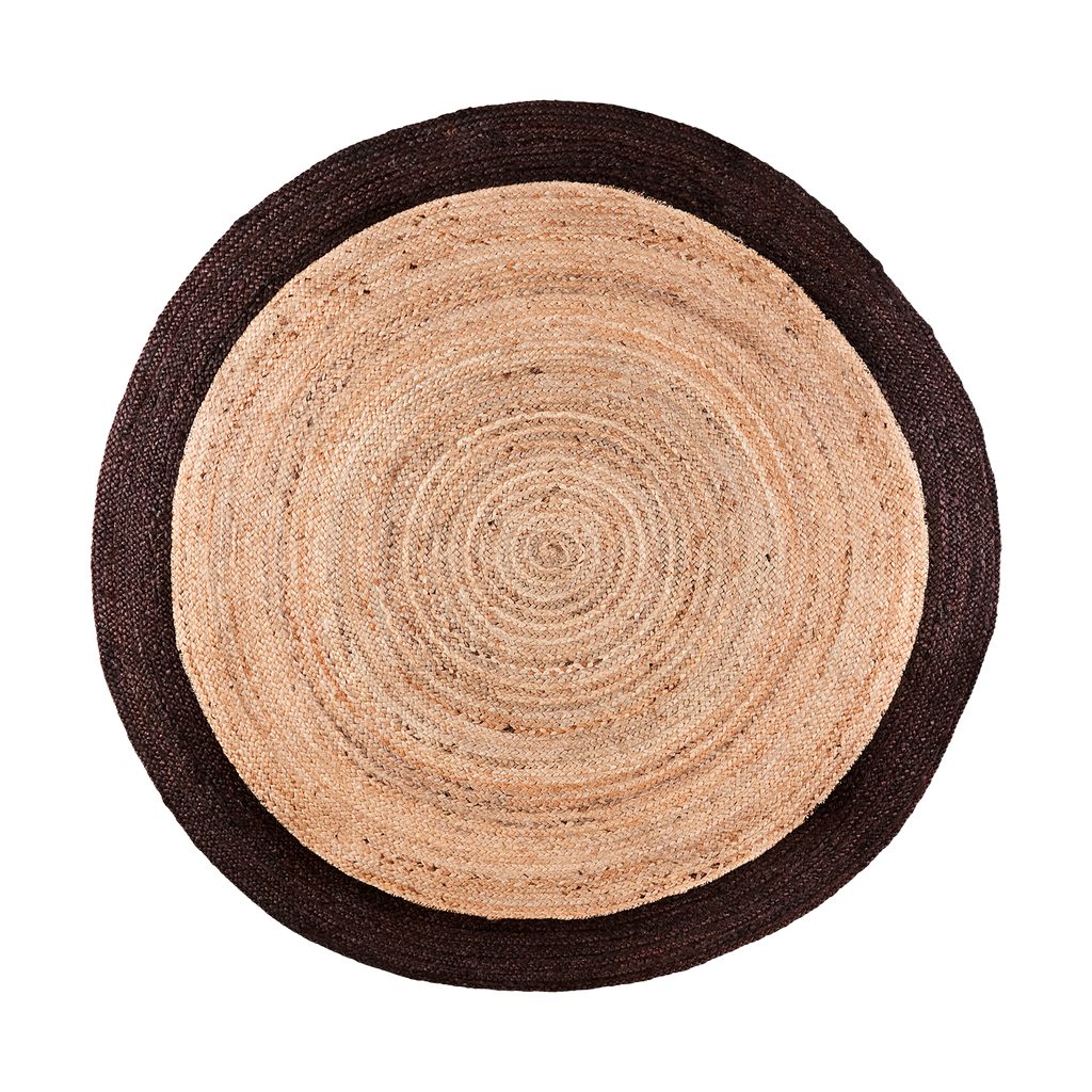Elegant rund matta i jute, perfekt för att skapa en varm och naturlig atmosfär i ditt hem.