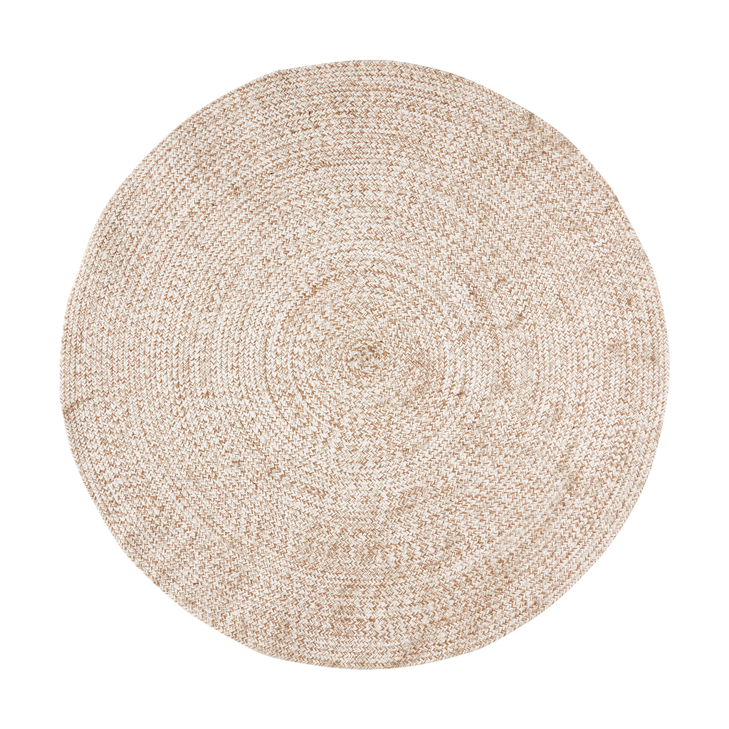 Rund matta i natur/vit från JUNI-kollektionen, tillverkad av jute och bomull. Perfekt för att skapa en varm och inbjudande atmosfär.