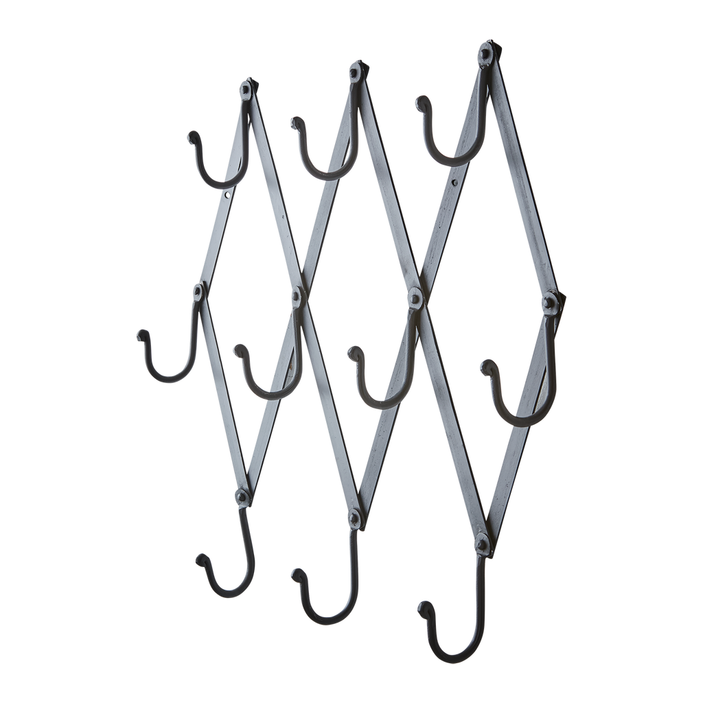 Elegant och justerbar klädhängare i svart järn, perfekt för alla hem.