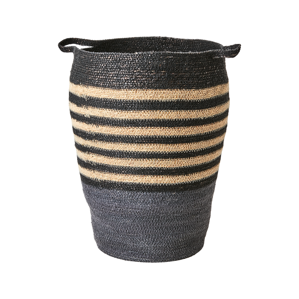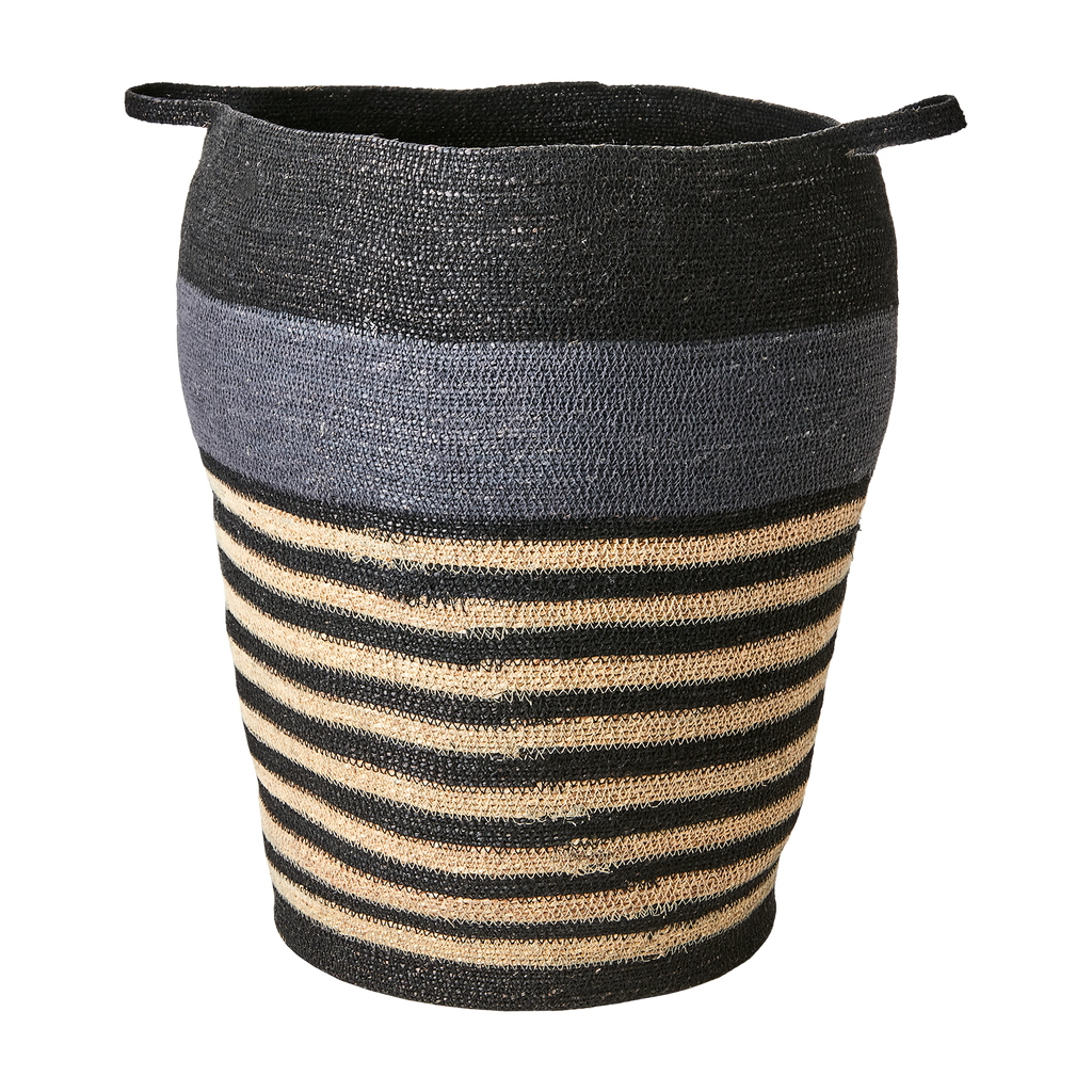 Ge hemmet en naturlig och varm känsla med de handsydda MADIBA-korgarna från Affari of Sweden. Tillverkade av slitstarkt sjögräs med dekorativa ränder i grått, svart och natur, vilket gör varje korg unik i både form och nyans. Perfekta för förvaring eller som inredningsdetalj i både moderna och rustika miljöer.