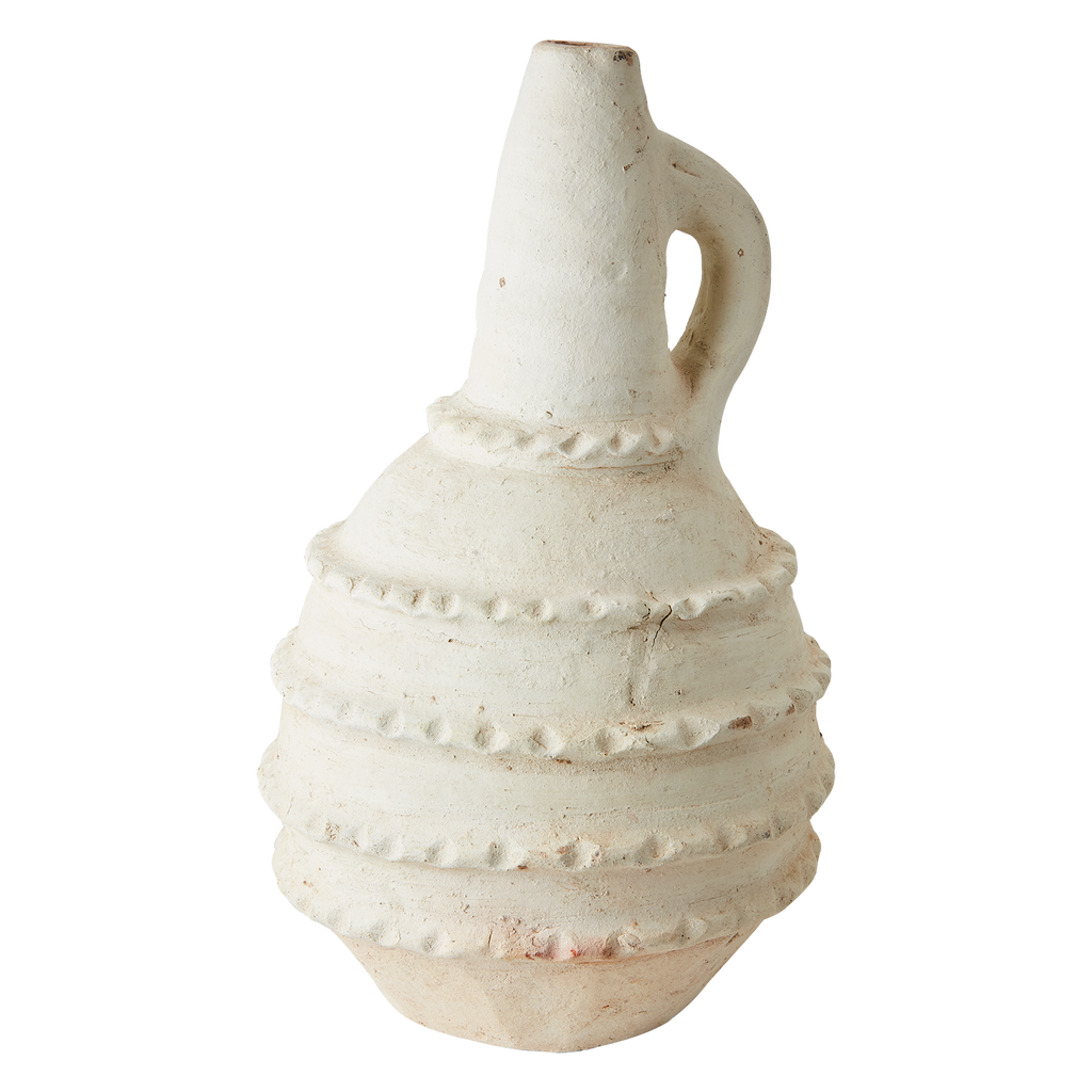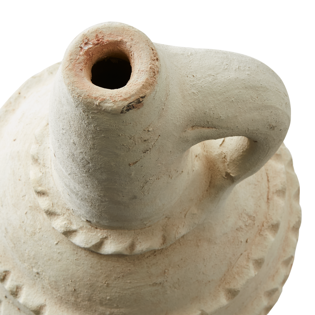 Designad för inomhusbruk, denna urna har en naturlig färgton med subtila nyansvariationer i keramikens textur. Dess porösa material kräver användning av ett vattentätt fat för att undvika fläckar, vilket gör den idealisk för dekorativa arrangemang snarare än direkt plantering.