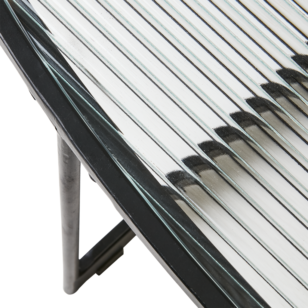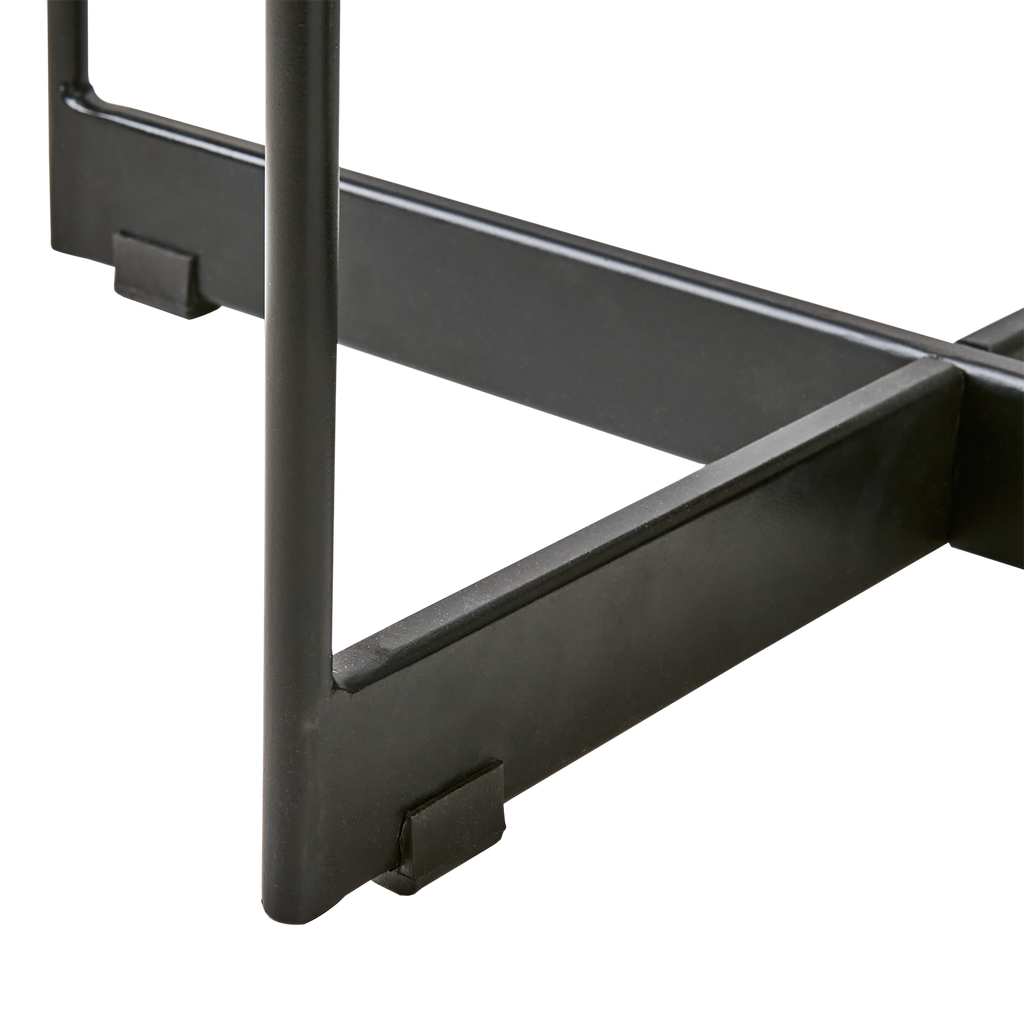 Det svarta järnunderredet ger en solid grund som både är hållbar och estetiskt tilltalande. Bordsskivan är gjord av slitstarkt glas med en subtil textur som tillför en touch av sofistikering. Detaljer som de svarta benen och den finstämda glasytan gör detta bord till ett konstverk i sig.