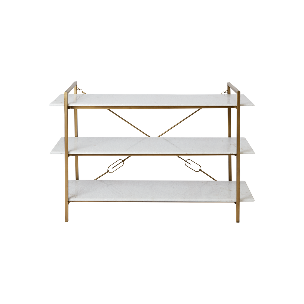 Ge ditt hem en touch av elegans med Affari of Sweden MILAN Hylla. Denna imponerande möbel kombinerar stil och funktionalitet med sitt mässingsfärgade järn och vita marmorskivor. Den moderna designen med öppna hyllplan gör den perfekt för att framhäva dina favoritföremål.