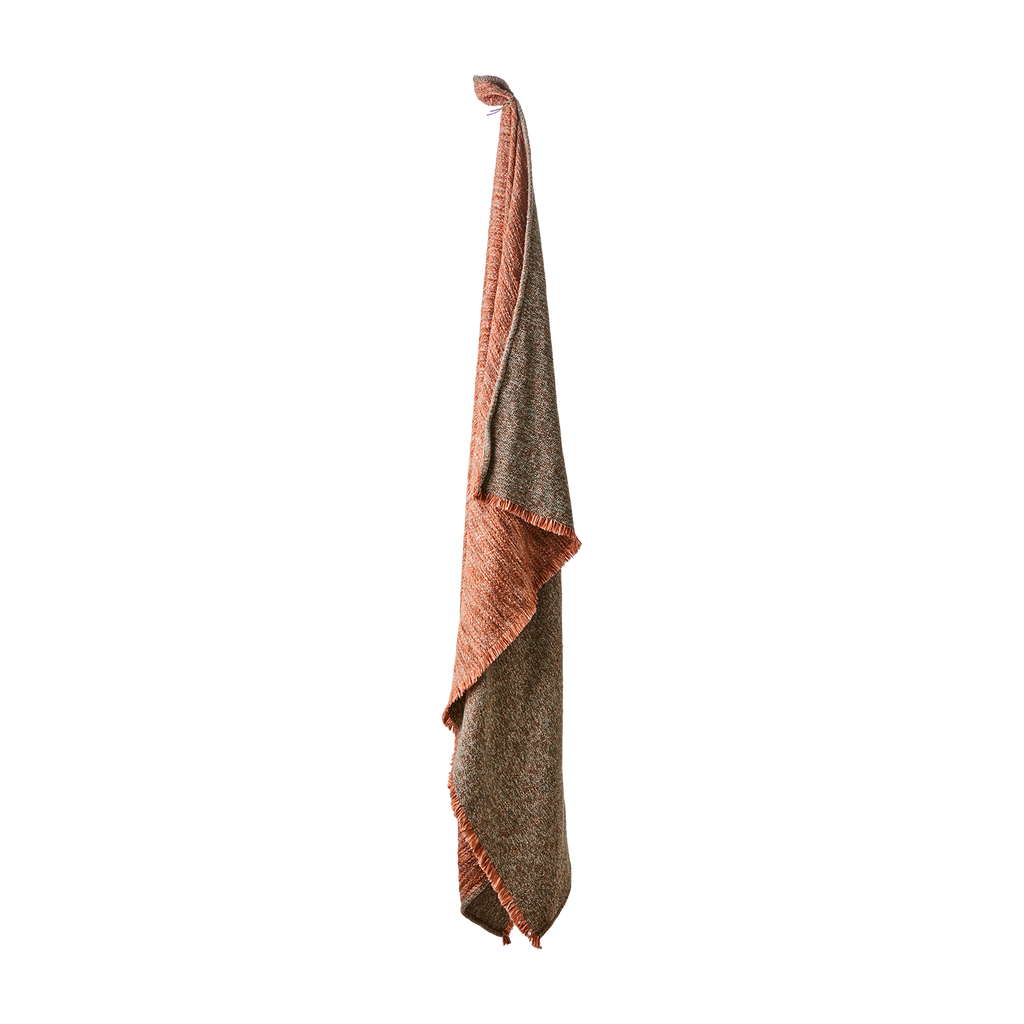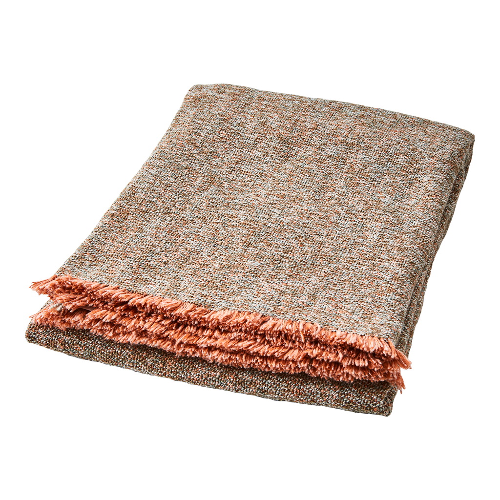 Elegant filt i olivgrön och korall från Affari of Sweden, perfekt för både stil och komfort.
