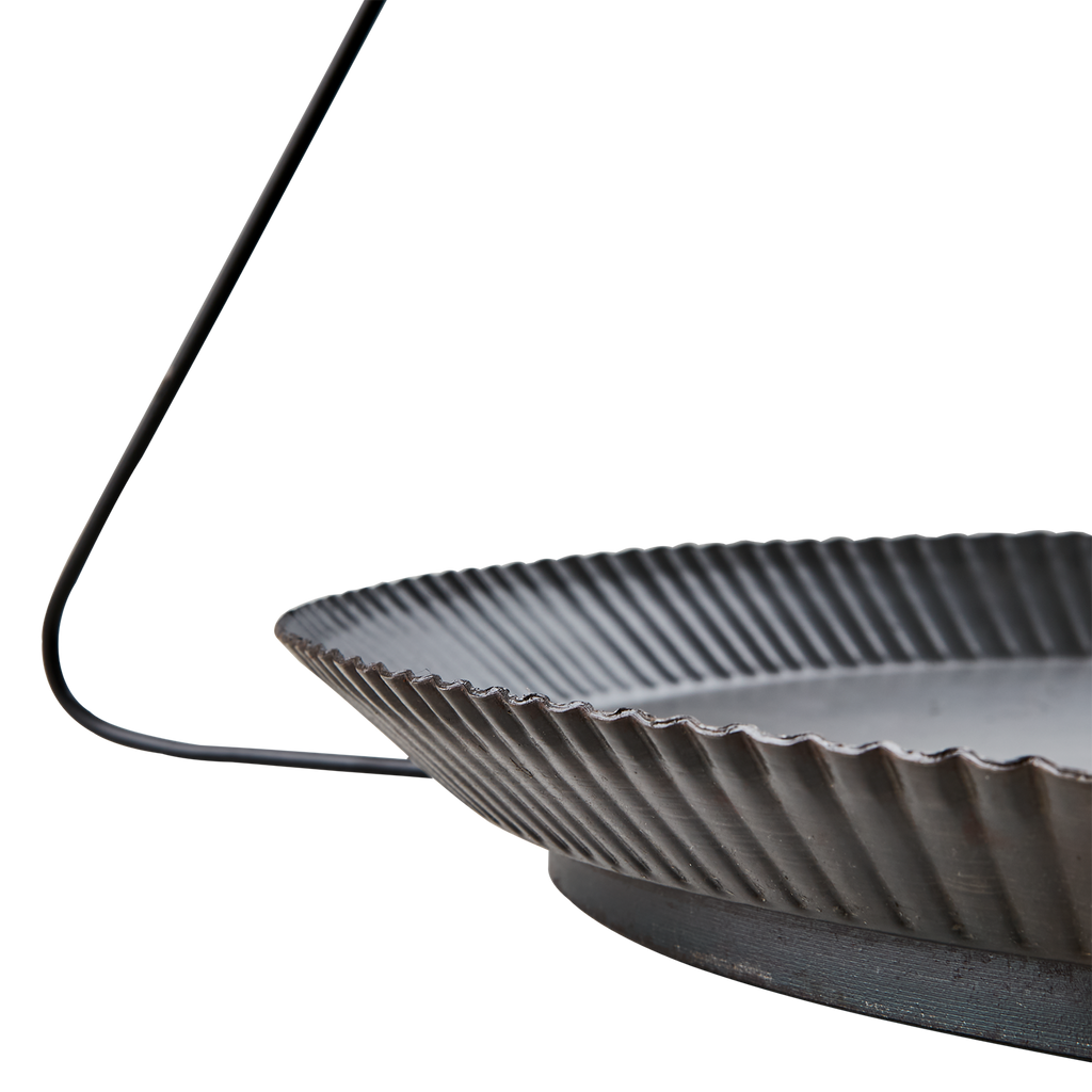 Varje fat har en slående design med räfflade kanter som bidrar till ett sofistikerat utseende. De triangulära upphängningarna tillför en unik detalj och gör det enkelt att förvara eller visa dem när de inte används. Eftersom de är gjorda av återvunnet material kan dessa fat fortsätta att patineras över tid om de utsätts för fukt, vilket ger varje bit en unik karaktär.