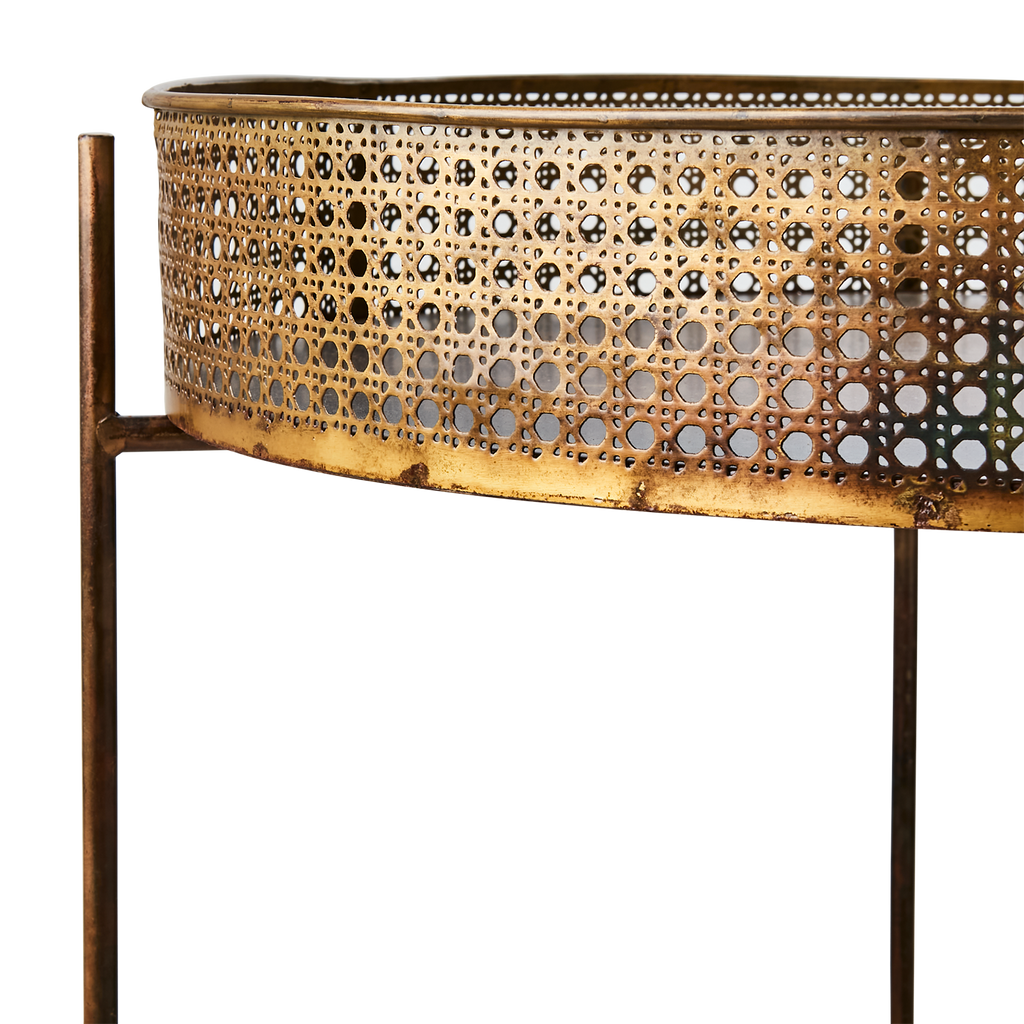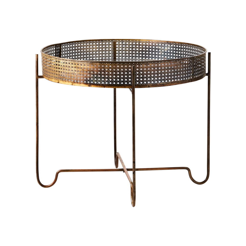 Ge ditt rum en touch av elegans med Affari of Swedens THOMAS Bord L. Detta vackra bord har en mässingsfärgad finish som utstrålar stil och sofistikering. Bordet kännetecknas av sin unika perforerade design, vilket ger en lätt och luftig känsla samtidigt som det erbjuder stabilitet och hållbarhet.