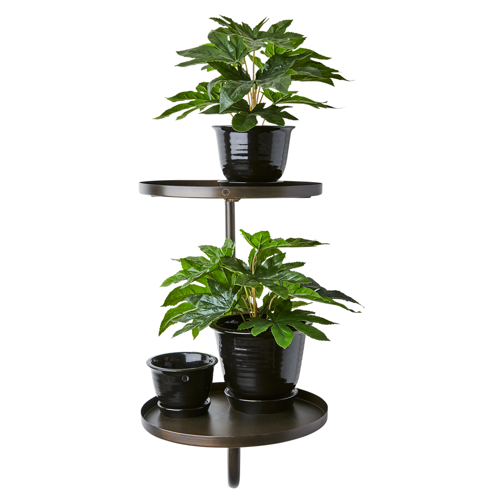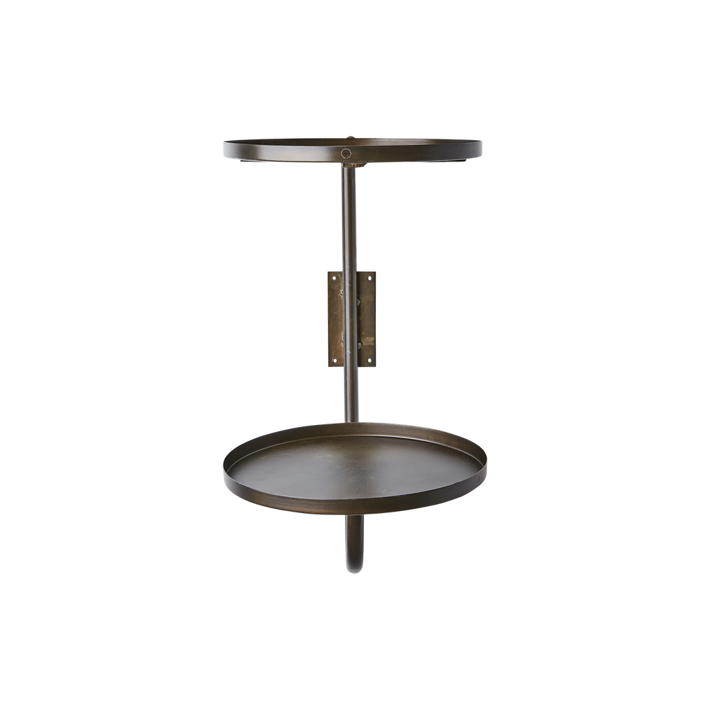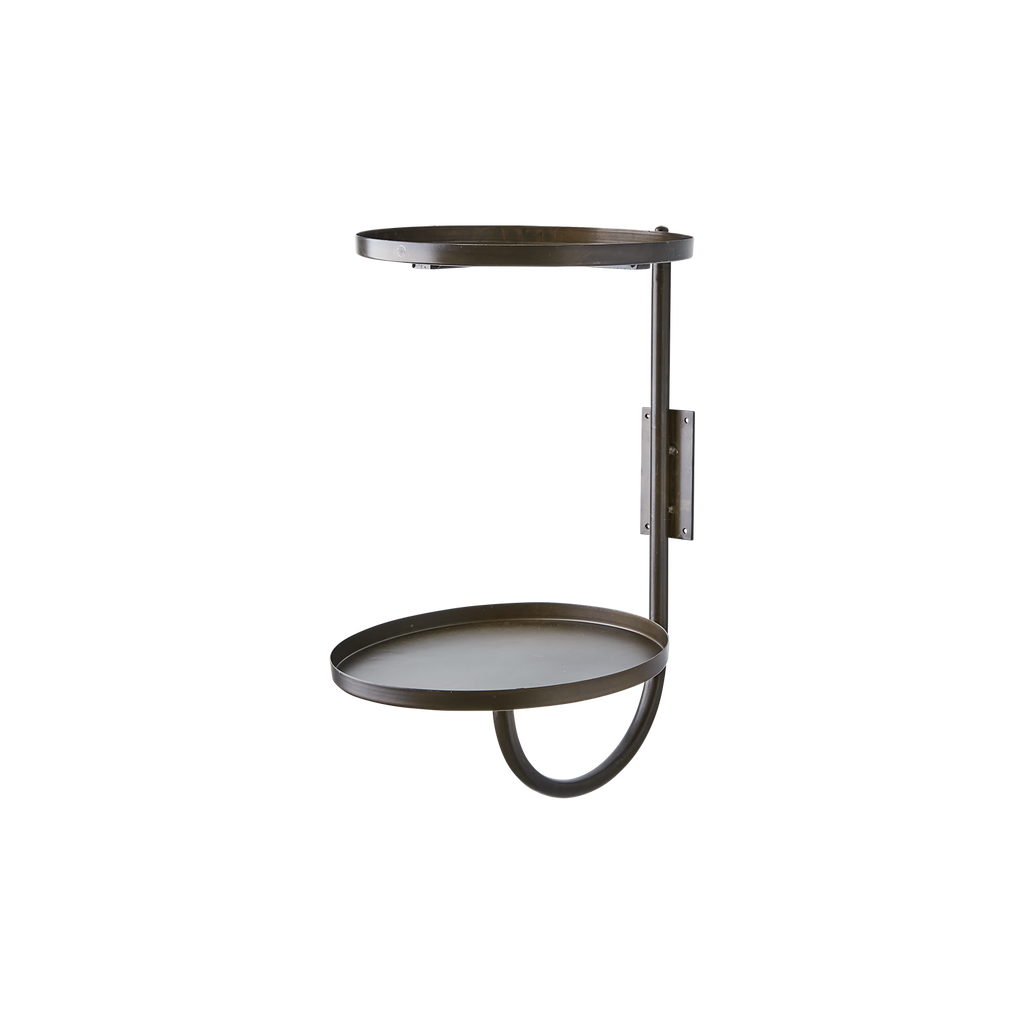 Vägghyllan har två rundade brickor med en diameter på Ø30 cm, vilket ger gott om plats för både små och medelstora objekt. Den svarta nyansen ger hyllan en modern känsla, medan järnmaterialet säkerställer hållbarhet och stabilitet.