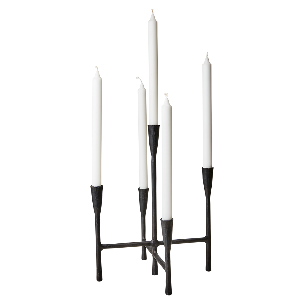Upplev den tidlösa elegansen med Affari of Sweden THOR Kandelaber i en stilren svart nyans. Denna kandelaber är tillverkad av robust järn och har en gedigen konstruktion som passar perfekt för både moderna och traditionella inredningar. Dess fyra ljushållare, designade för ljus med en diameter på Ø2,2 cm, ger ett vackert och jämnt ljus för alla dina tillfällen.