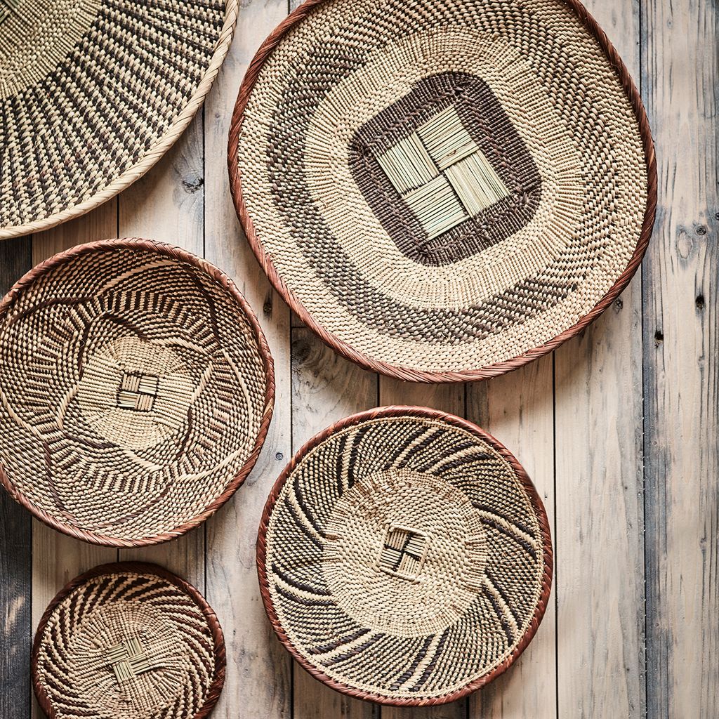 Välkommen till en värld av autentiskt hantverk med Affari of Sweden TRIBE Fat. Varje fat är handflätat av skickliga hantverkare på den afrikanska landsbygden, vilket gör varje exemplar unikt i både färg, form och storlek. De blandade naturfärgerna och det intrikata mönstret av ilala palm ger en tidlös elegans som passar både för dekorativ och praktisk användning.