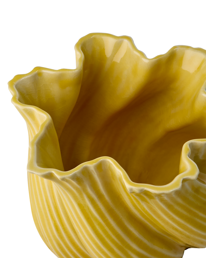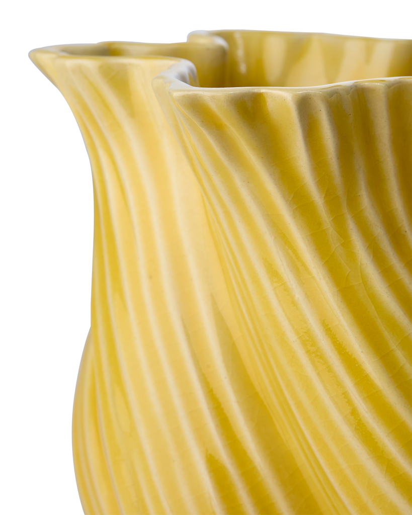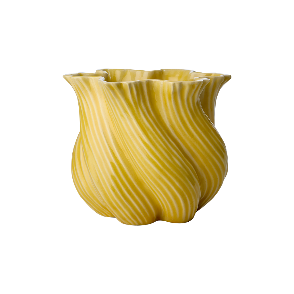 Elegant TWIST vas i stengods med livfull gul färg. Perfekt för blommor eller som dekorativ pjäs.