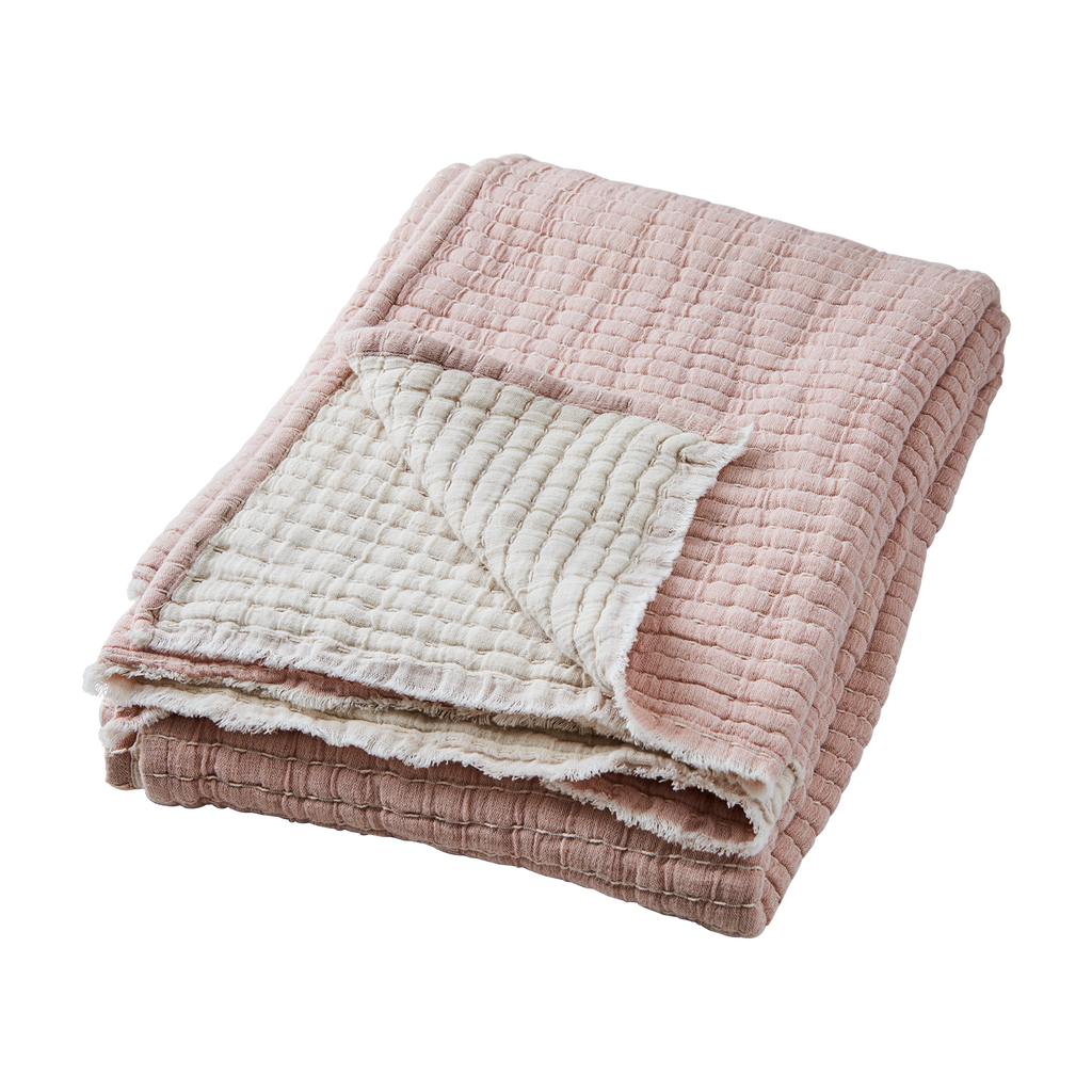 Mjuk och stilren ljusrosa filt i bomull från Affari of Sweden, perfekt för mysiga stunder.