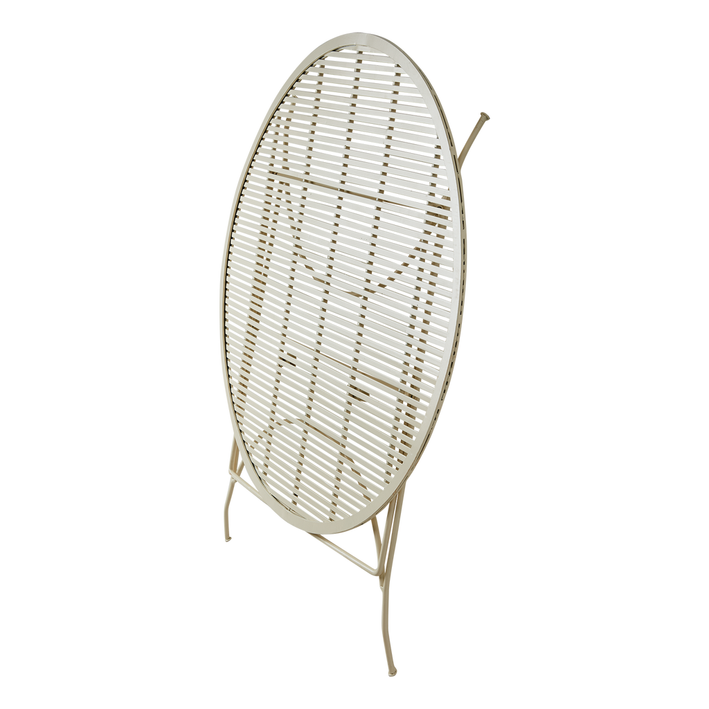 Den runda bordsskivan har en unik design med slitsar som ger bordet en lätt och luftig känsla. Den hållbara konstruktionen säkerställer att bordet kan användas både inomhus och utomhus, och det kommer naturligt att patineras över tid när det utsätts för fukt.