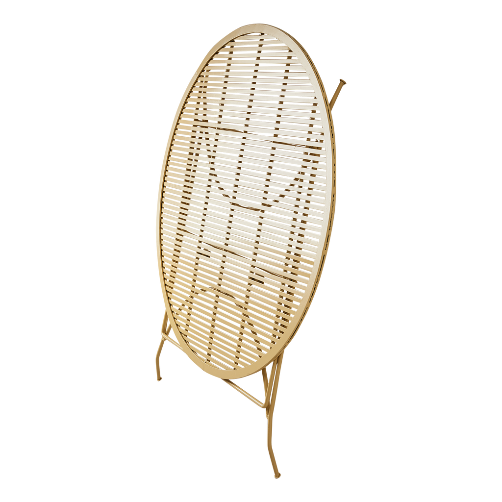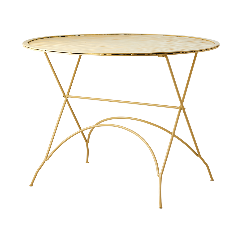 Bordets design är både funktionell och estetiskt tilltalande med ett lätt och luftigt utseende tack vare de smala, korsande metallstängerna. Detta skapar ett intressant visuellt mönster som bidrar till bordets övergripande attraktionskraft. Den intensiva gula färgen lägger till en livlig färgklick, vilket gör det till en perfekt mittpunkt i ditt hem.