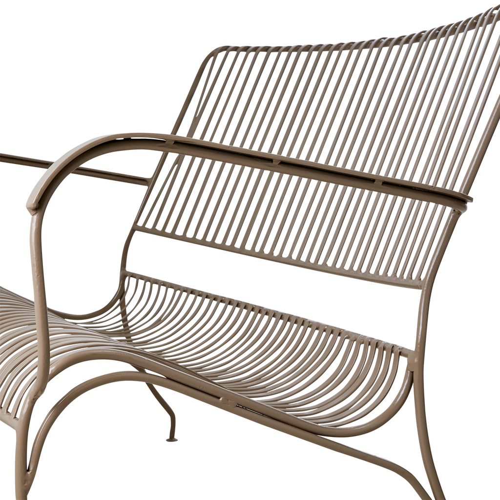 Den robusta järnkonstruktionen garanterar hållbarhet och stabilitet, medan den eleganta formen och den subtila beige färgen gör den mångsidig för olika inredningsstilar. Perfekt för både trädgården och vardagsrummet.