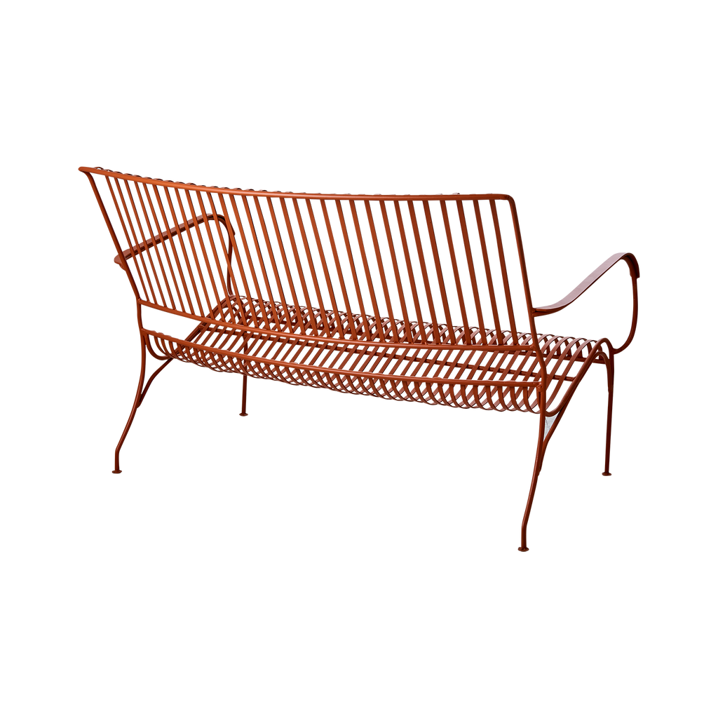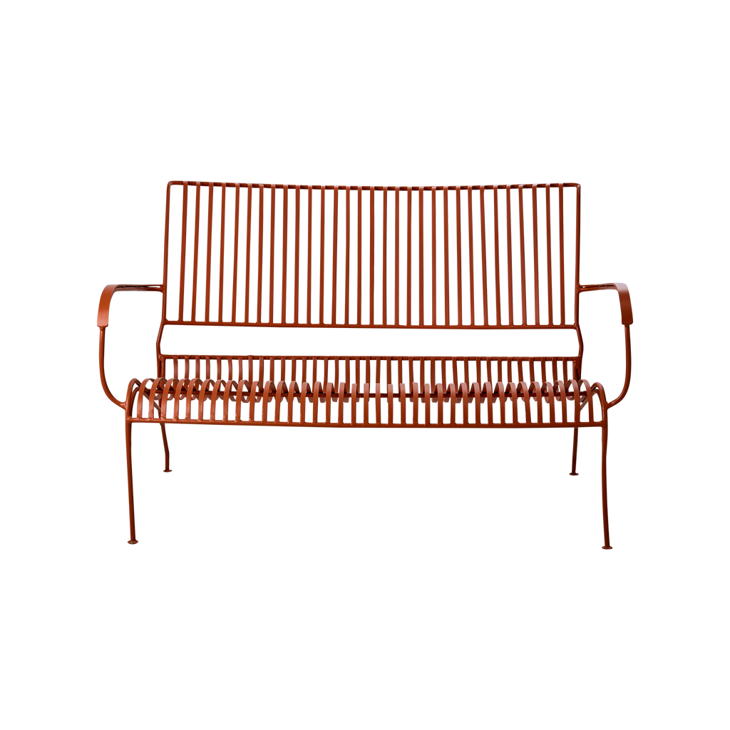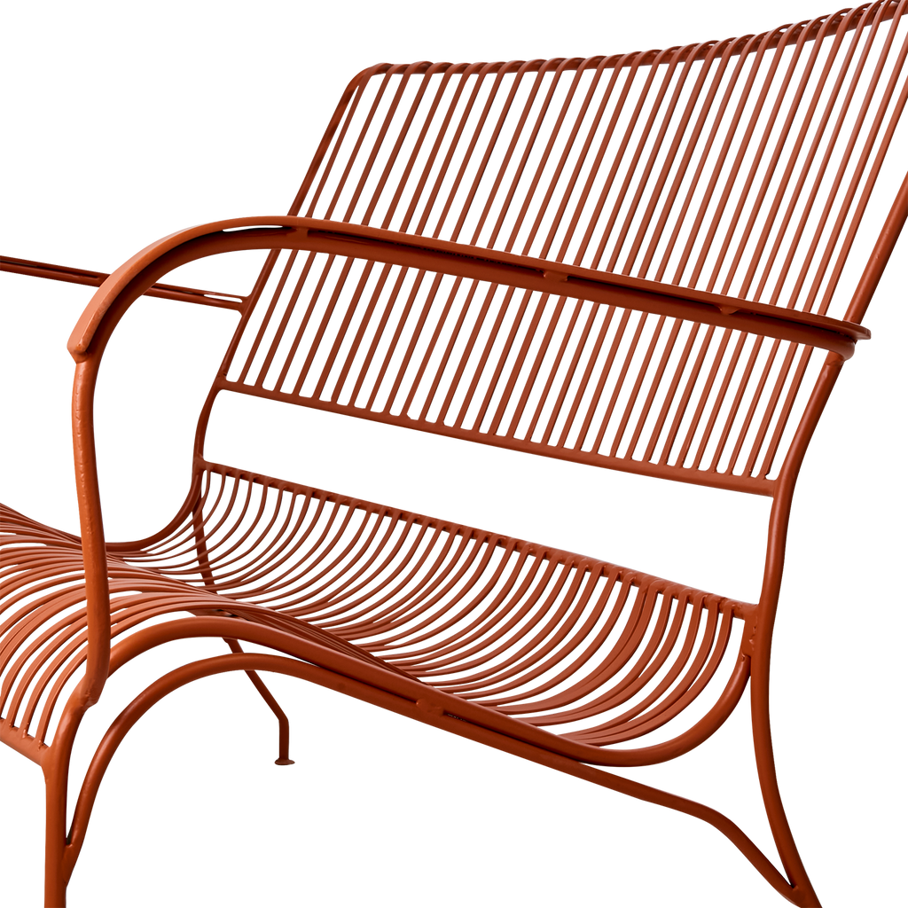 Upptäck Affari of Sweden VISBY Soffa i den unika färgen dimorange. Denna soffa kombinerar modern estetik med hållbarhet, tack vare sitt robusta järnmaterial. Designen med tunna, eleganta ribbor ger inte bara en luftig känsla utan också en stilren look som passar perfekt i både trädgårdar och offentliga miljöer.