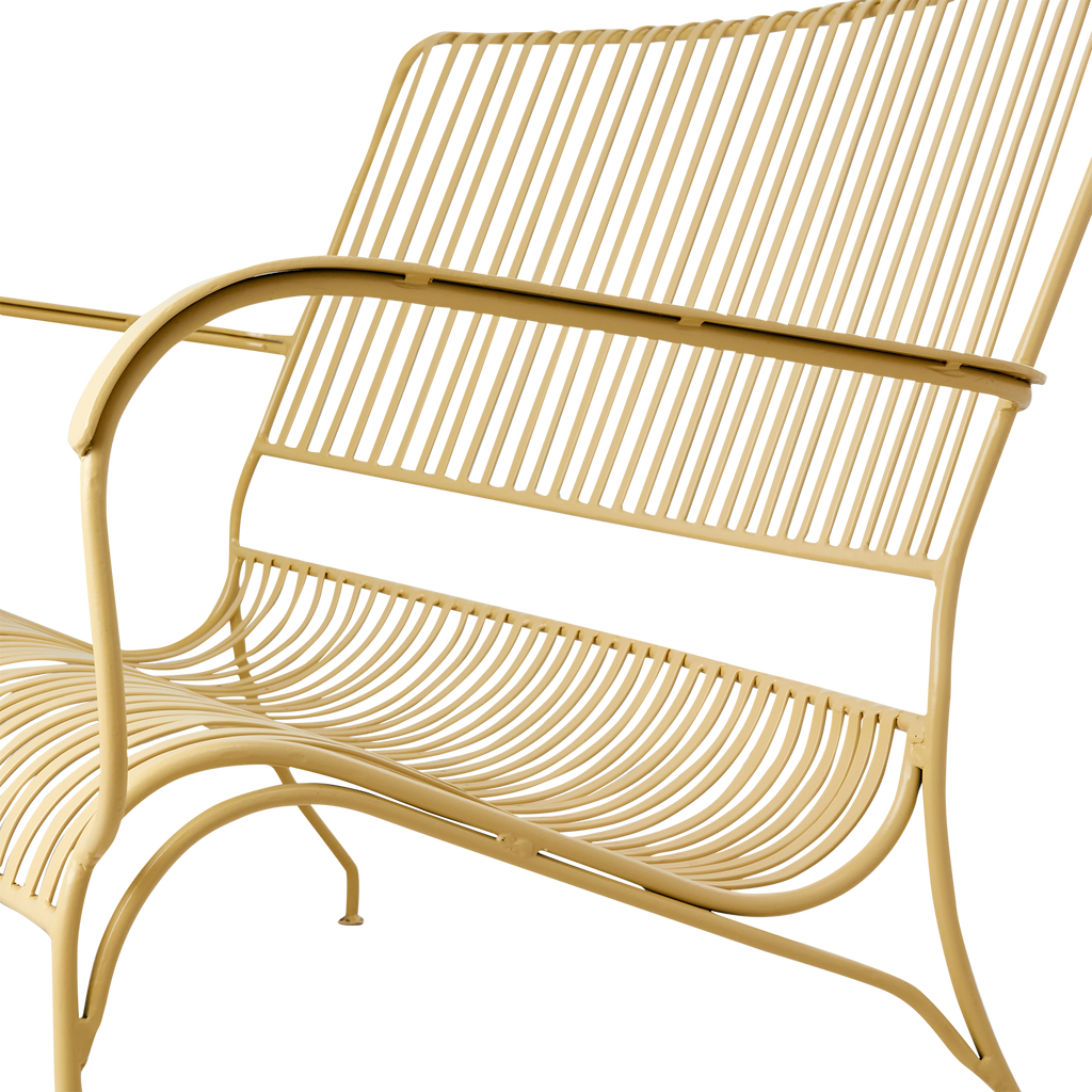 Uppdatera din utomhusmiljö med den stilrena Affari of Sweden VISBY Soffa i en vacker gul nyans. Denna soffa är tillverkad i tåligt järn, vilket gör den perfekt för alla väderförhållanden. Dess tidlösa och eleganta design passar perfekt i trädgårdar, på uteplatser eller balkonger.
