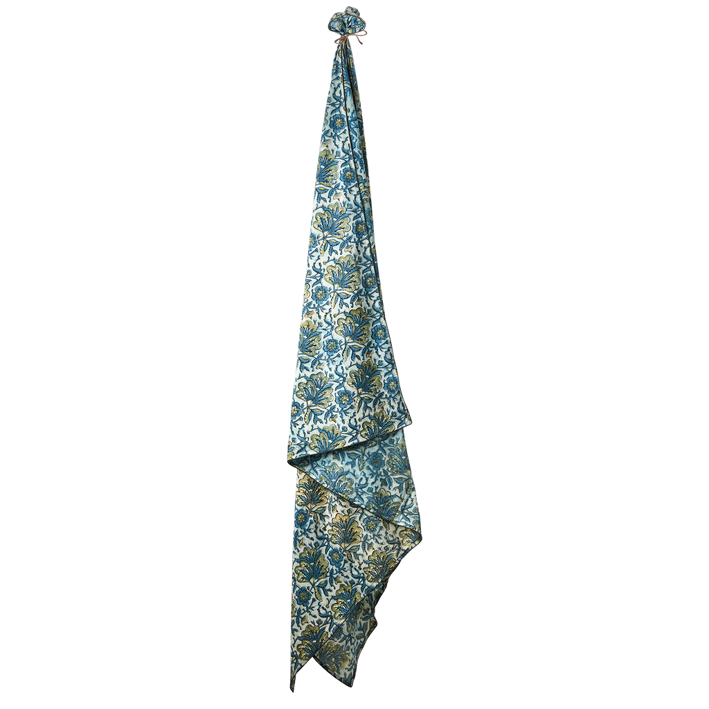 Bordsduk. Blocktryckt. Mönster och färgnyans kan variera.