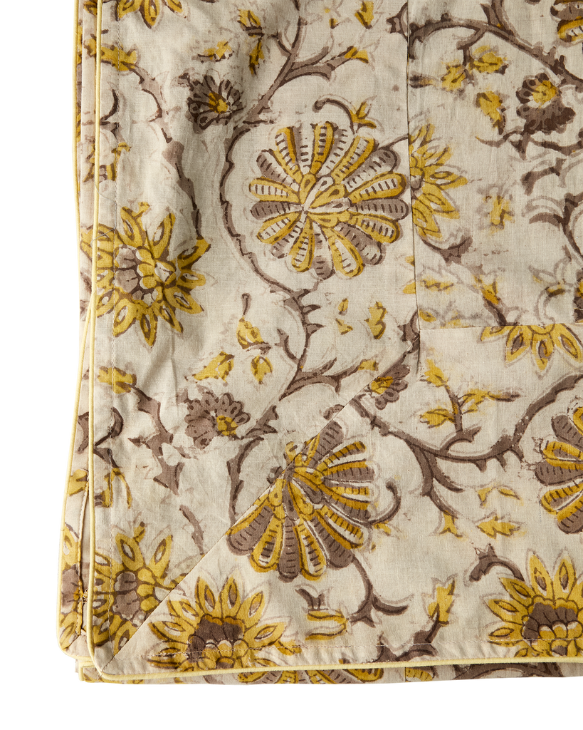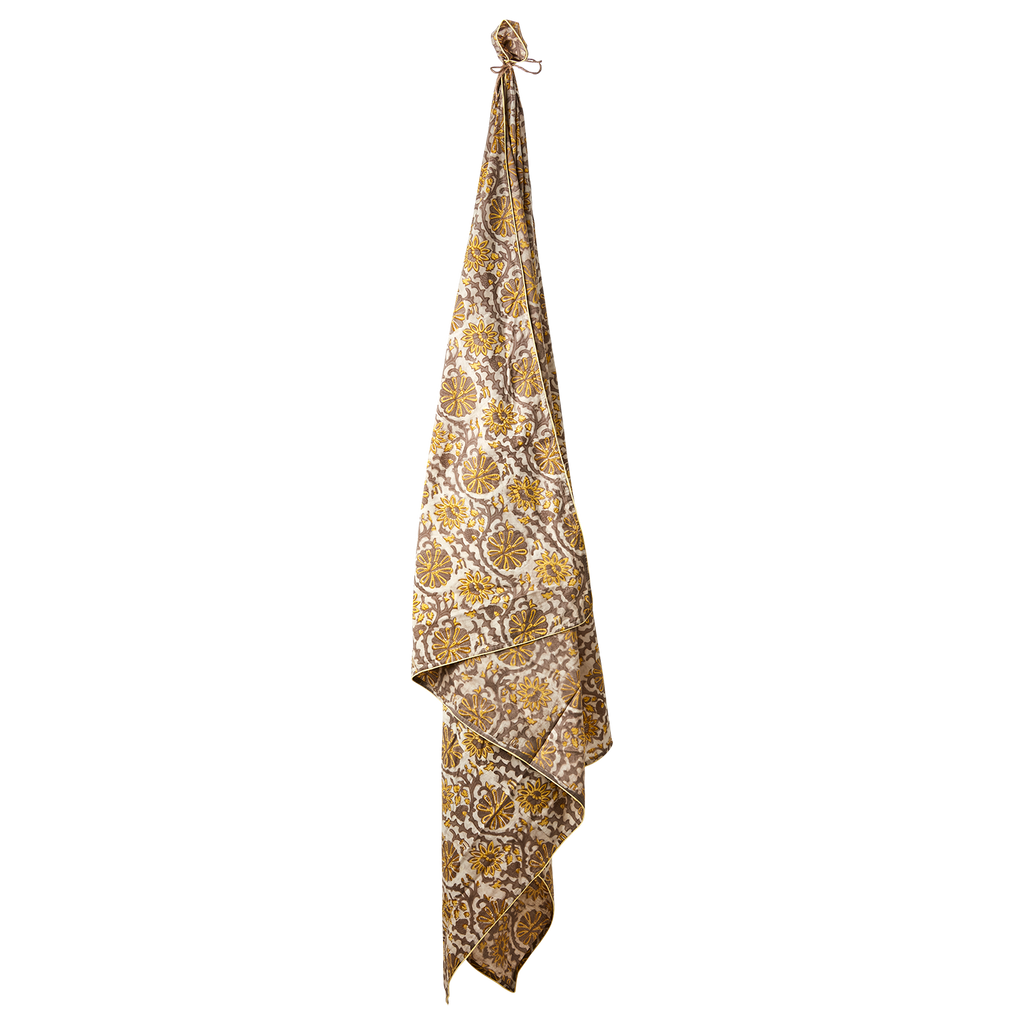 Bordsduk. Blocktryckt. Mönster och färgnyans kan variera.