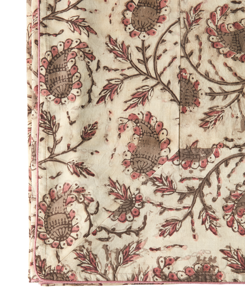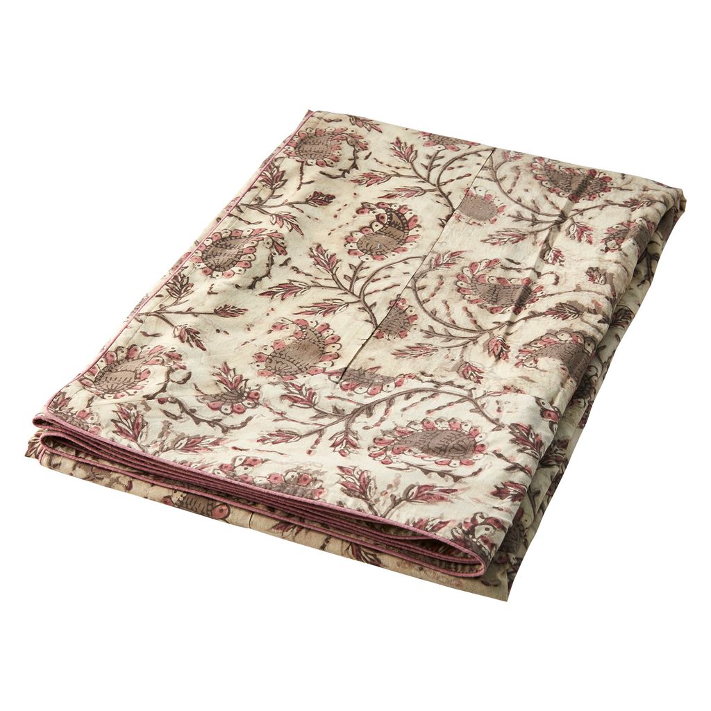 Bordsduk. Blocktryckt. Mönster och färgnyans kan variera.