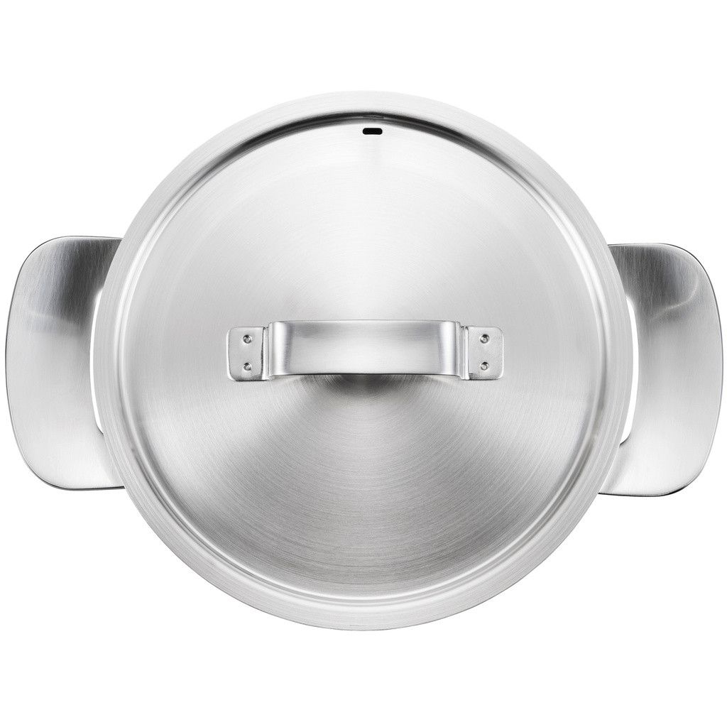 Handtagen är ergonomiska och värmebeständiga, vilket ger dig ett säkert grepp även när innehållet kokar. Det medföljande locket i rostfritt stål hjälper till att bevara smak, näring och fukt.