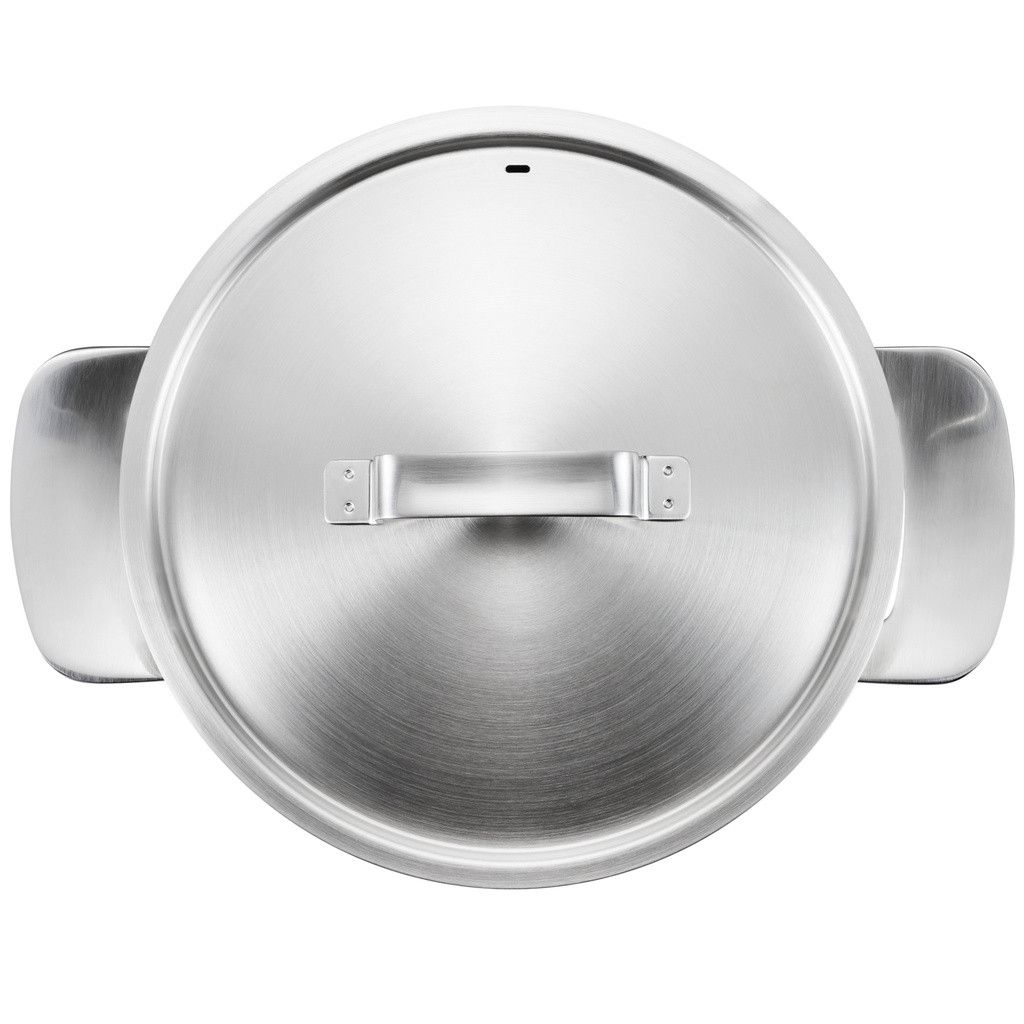 Grytan är tillverkad i 90 % återvunnet rostfritt stål och har en tjock, trelagersbotten som säkerställer snabb och jämn uppvärmning. Den håller värmen effektivt, vilket gör att du sparar energi utan att kompromissa med resultatet.