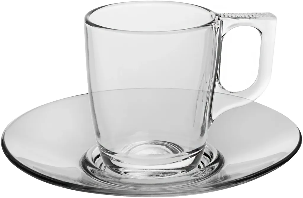 Modern espressokopp från serien Voluto tillverkad i fullhärdat glas. Koppen är extra resistent och har en hög härdighet mot stötar, upp till 5 gånger tåligare än glas som inte är härdat. En hållbar kopp som tål värmevariationer med upp till 130C.