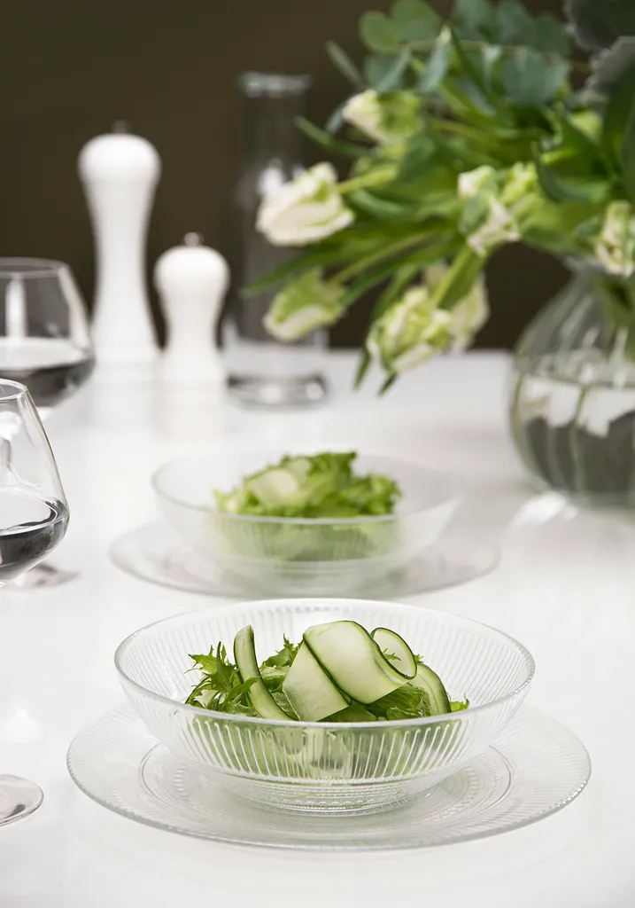 Skål tillverkad i fullhärdat glas som förlänger livslängden upp till 50 gånger jämfört med ohärdat glas. Tallriken har ett tydligt mönster i relief och är motståndskraftig mot stötar. Tål värmevariationer upp till 130°C.