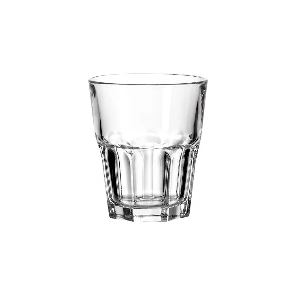 Stapelbart snapsglas i tåligt fullhärdat glas, perfekt för professionella kök och temperaturvariationer.